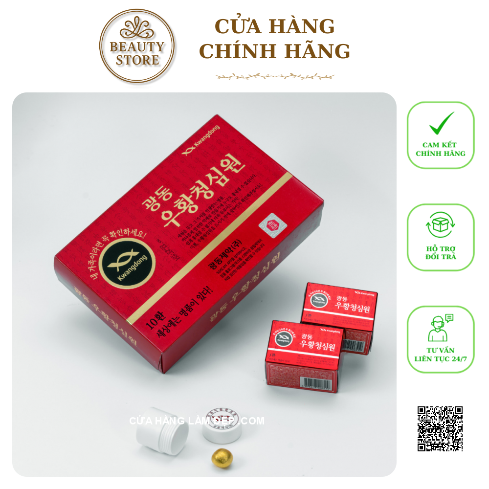 An Cung Ngưu Hoàng Kwangdong Hàn Quốc Hộp Đỏ (hay còn được gọi là An Cung Tổ Kén Kwangdong Hàn Quốc – An cung nội địa Hàn Quốc) hộp 10 viên được tinh chế 100% từ những thành phần dược liệu quý giá của Hàn Quốc, được bào chế từ tinh hoa bài cổ truyền lâu đời có lịch sử hàng trăm năm kết hợp với công nghệ tân tiến hiện đại mang lại công dụng hiệu quả tối ưu nhưng vẫn đảm bảo an toàn cho sức khỏe người sử dụng.