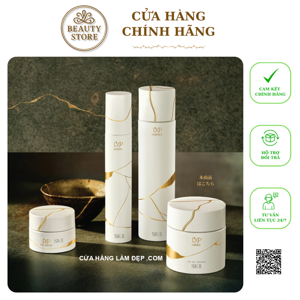 Trọn Bộ Dưỡng Da SK-II LXP Kintsugi là dòng sản phẩm chăm sóc da cao cấp nhất của SK-II, kết hợp tinh hoa công nghệ độc quyền Pitera™ cô đặc cùng triết lý Kintsugi – nghệ thuật “hàn gắn vàng” nổi tiếng của Nhật Bản.