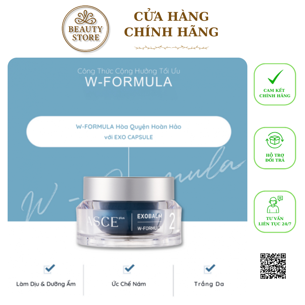 Kit ASCEplus EXOBALM là bộ sản phẩm chăm sóc da cao cấp từ tập đoàn ExoCobio, bao gồm hai sản phẩm chính: EXO CAPSULE và kem W-FORMULA. Sản phẩm được phát triển dựa trên công nghệ tiên tiến ExoSCRT®, mang lại hiệu quả tối ưu trong việc cải thiện làn da, làm mờ nếp nhăn và tăng cường độ ẩm cho da.