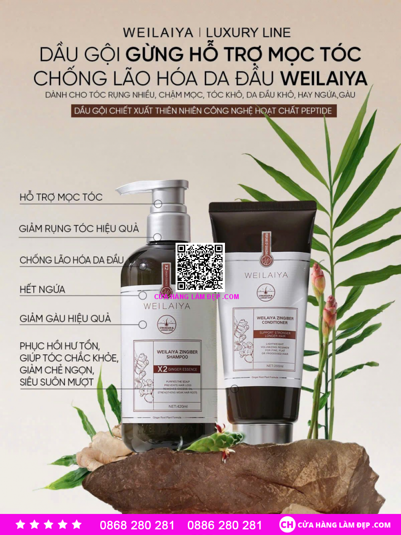 Giới thiệu Bộ Dầu Gội Gừng Hỗ Trợ Mọc Tóc Và Hỗ Trợ Ngừa Lão Hóa Da Đầu Weilaiya Zingiber Luxury: