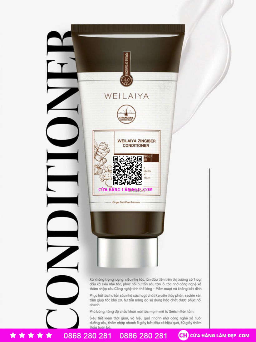Dầu xả gừng hỗ trợ mọc tóc và Hỗ Trợ Ngừa Lão Hóa da đầu Weilaiya Luxury chứa chiết xuất rễ gừng, keratin thủy phân, protein tơ tằm và các thành phần khác. Giúp nuôi dưỡng tóc, cải thiện tình trạng khô, xơ rối, làm mềm tóc và giúp tóc sáng bóng với kết cấu mềm mượt và chắc khỏe hơn.
