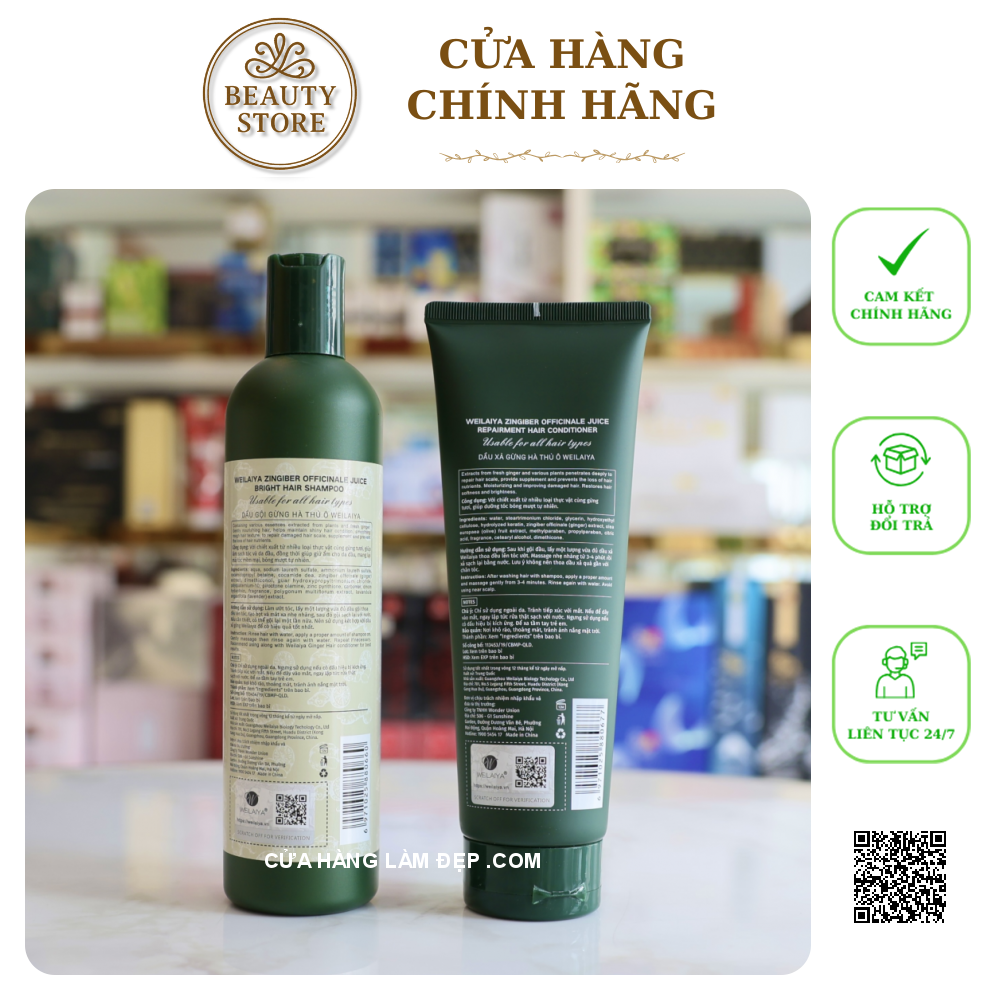 Bộ Dầu Gội Xả Gừng Hà Thủ Ô Weilaiya Zingiber Oficinale Juice Ngăn Rụng Tóc Từ Trung Quốc 400ml x 250ml