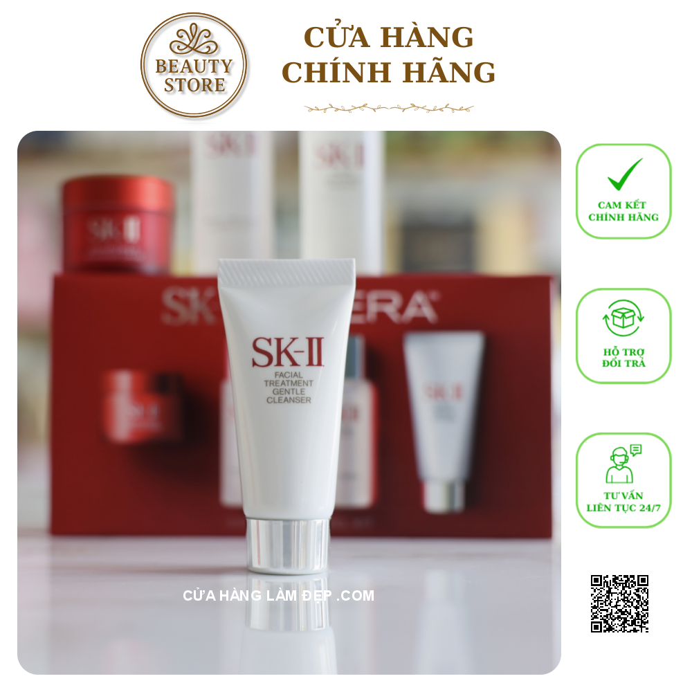 Sữa rửa mặt SK-II Facial Treatment Gentle Cleanser 20g: Sữa rửa mặt SK-II Facial Treatment Cleanser là sản phẩm chăm sóc da mặt nổi tiếng của thương hiệu SK-II đến từ Nhật Bản, giúp làm sạch bụi bẩn tận sâu trong lớp Tinh chất da, được đông đảo chị em phụ nữ khắp nhiều nơi tin tưởng sử dụng.