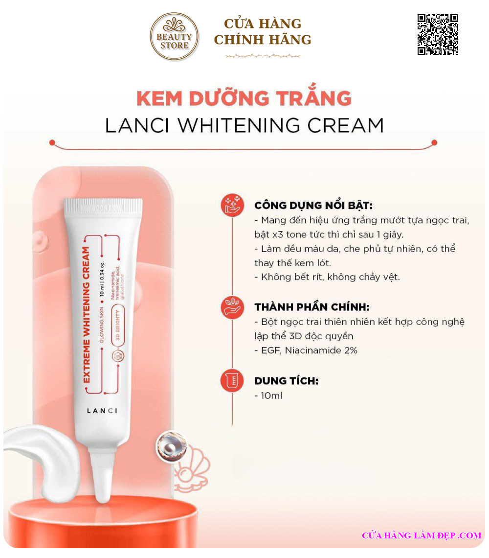 2: Kem Dưỡng Trắng Lanci Whitening Cream: 10ml