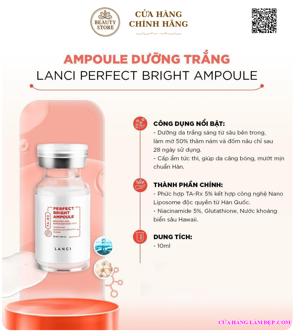 1: Ampoule Dưỡng Trắng Lanci Perfect Bright Ampoule: 10ml