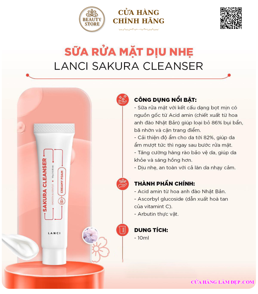5: Sữa Rửa Mặt Dịu Nhẹ Lanci Sakura Cleanser