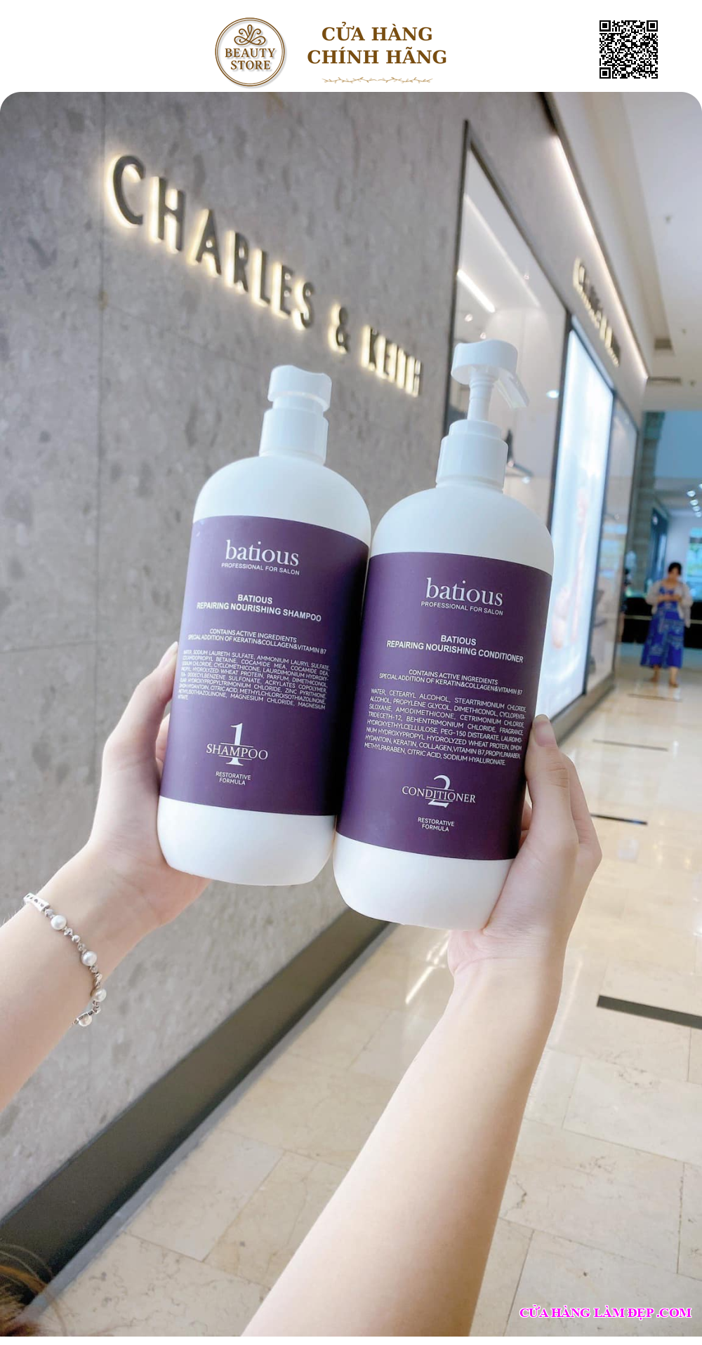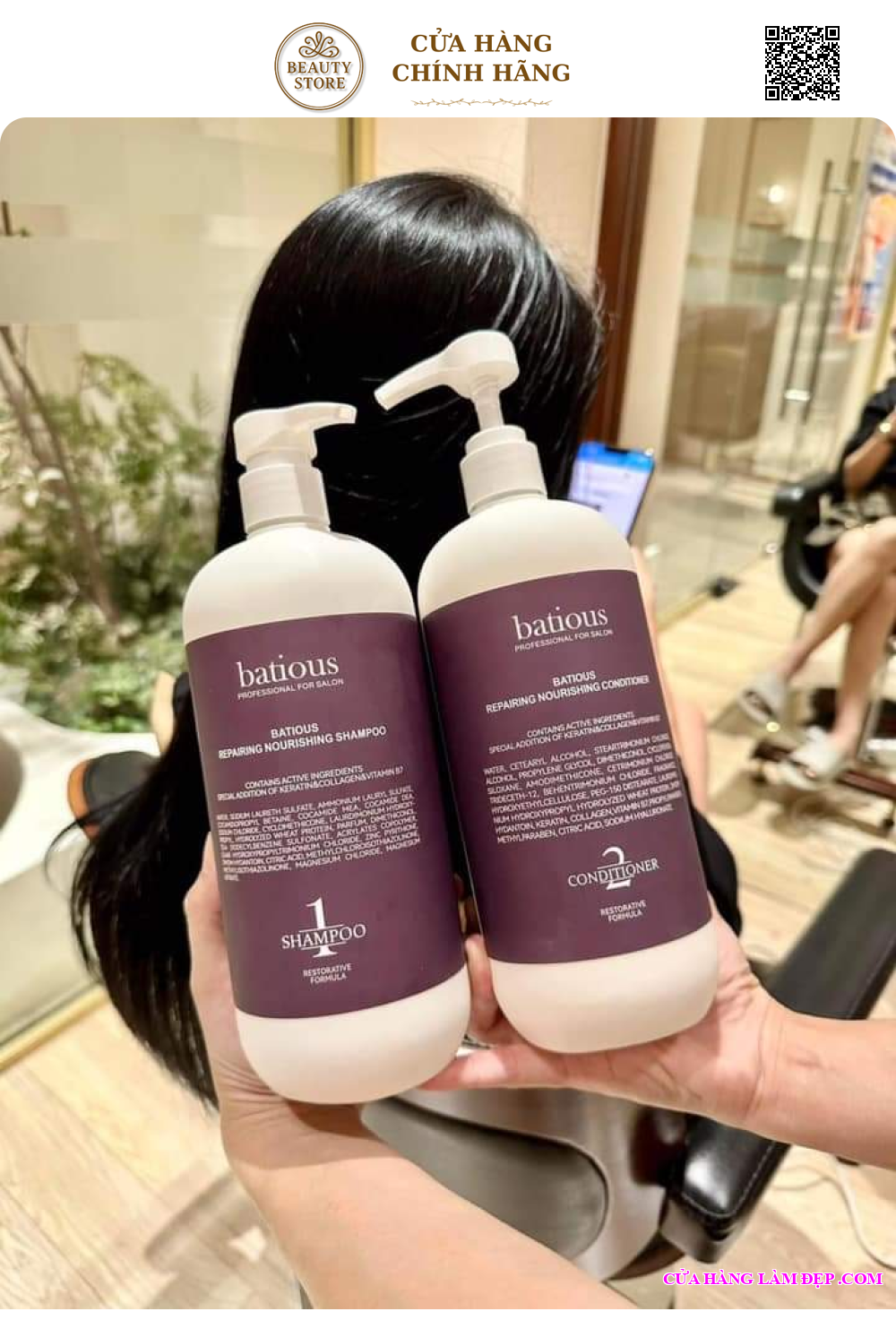 - Bạn có thể tìm mua Bộ Gội Xả Salon Batious Tím Cao Cấp Giúp Phục Hồi Hư Tổn, Tái Tạo Nang Tóc qua website: cuahanglamdep.com