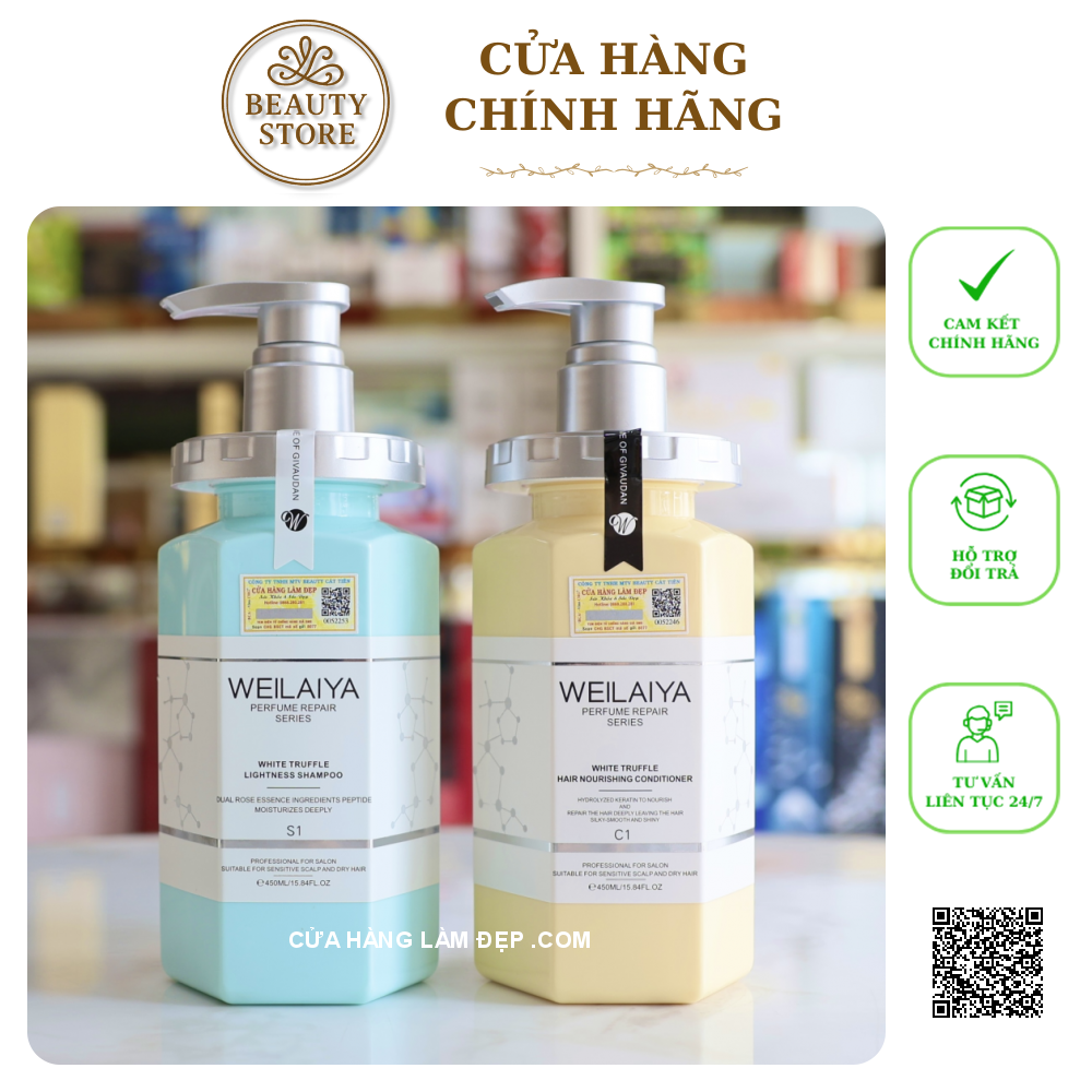 Bộ Gội Xả Weilaiya Phục Hồi Đa Tầng Chiết Xuất Trứng Cá Tầm Và Nấm Truffle Trắng Từ Trung Quốc 450ml x 450ml được khách hàng của Hệ Thống Cửa Hàng Làm Đẹp đánh giá cao. Bạn có thể xem thêm nội dung đánh giá dưới phần bình luận.