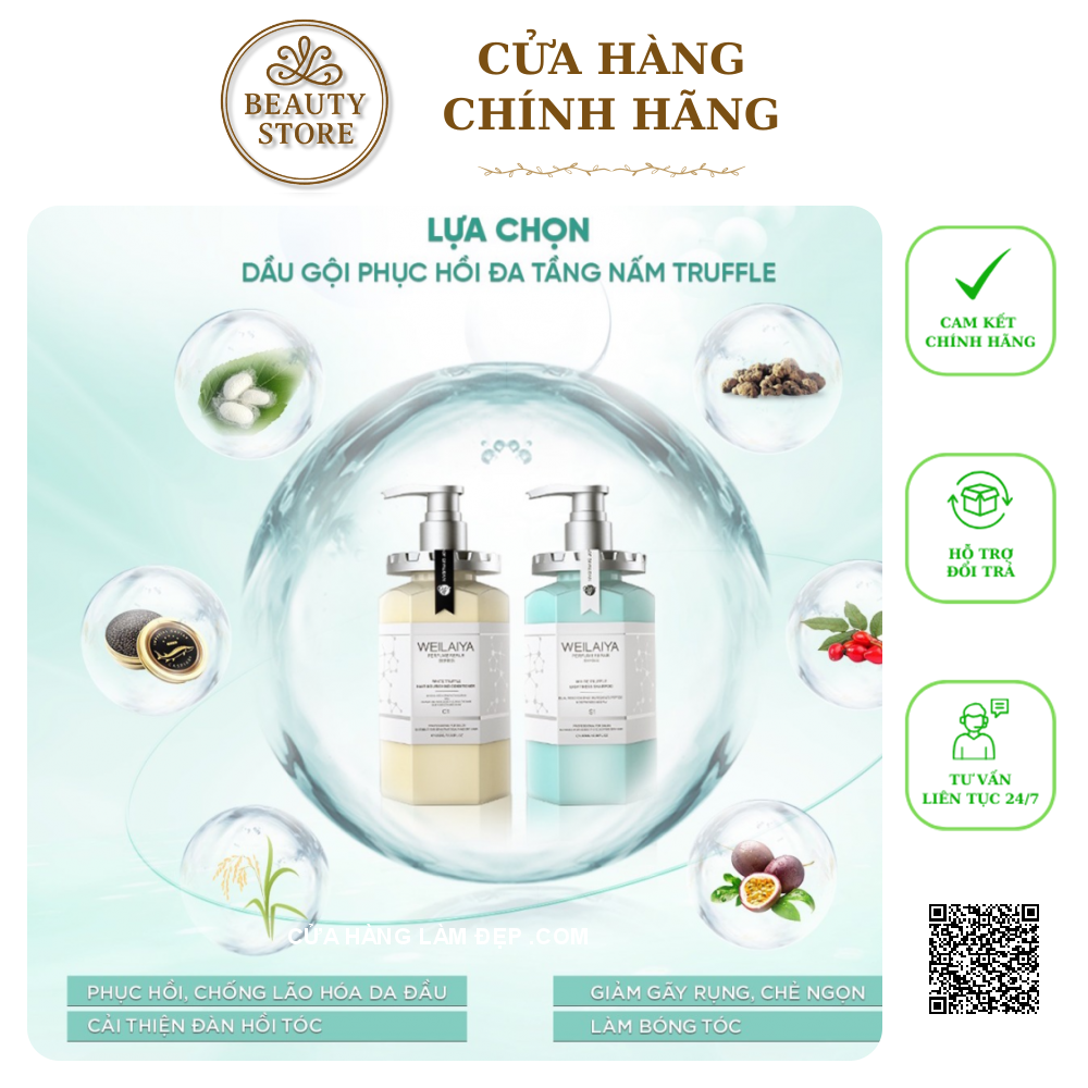- Tại HCM bạn có thể tìm và mua Bộ Gội Xả Phục Hồi Đa Tầng Weilaiya Chiết Xuất Trứng Cá Tầm Và Nấm Truffle Trắng qua website: cuahanglamdep.com