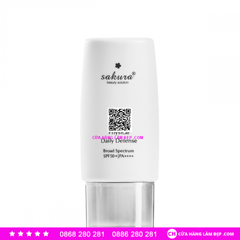 - Retinol - Ceramide - Chiết xuất Tảo Biển, Cam Thảo - Chiết xuất Lô Hội, dầu hạt Maca - Chiết xuất Nụ Tầm Xuân - Acetyl Hexapeptide 8 & Palmitoyl Pentapeptide-S Kem hỗ trợ Hỗ Trợ Chống Nắng Vật Lý Sakura Physical Daily Defense SPF 50+ PA++++: