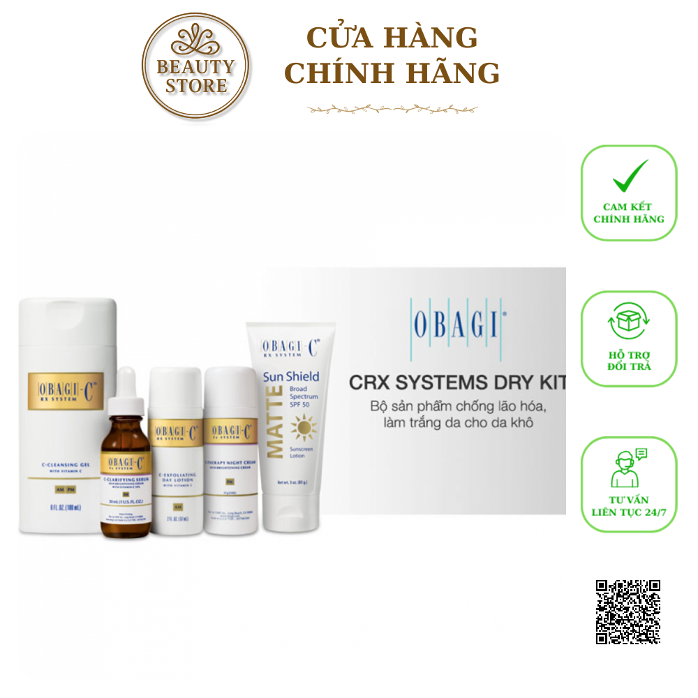 Tại Hệ Thống Cửa Hàng Làm Đẹp, Bộ Sản Phẩm Hỗ Trợ Ngừa Lão Hóa, Làm Trắng Cho Da Khô Obagi C Rx Systems Dry Kit có giá: 8.820.000 VND