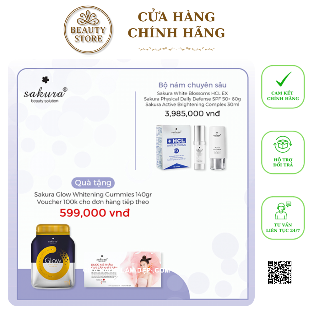 - Tại Hệ thống Cửa hàng làm đẹp, Bộ Sản Phẩm Mờ Nám Chuyên Sâu Sakura có giá 3.985.000 VNĐ