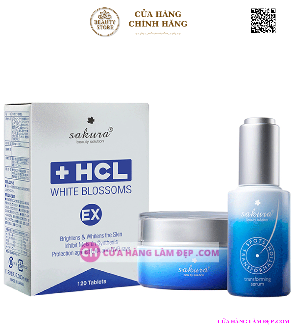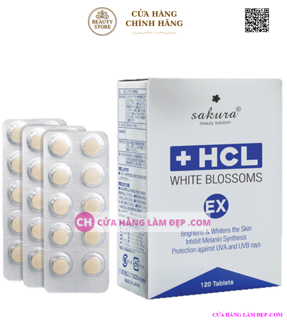 - Viên uống Sakura HCL White Blossom EX đặc làm mờ vết nám, làm mờ vùng sạm cho tác dụng dưỡng trắng vượt trội