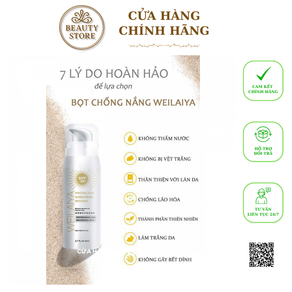 Sản Phẩm Bột Chống Nắng Protect Sunscreen Mousse SPF30+ Weilaiya được khách hàng của Hệ Thống Cửa Hàng Làm Đẹp đánh giá cao. Bạn có thể xem thêm nội dung đánh giá dưới phần bình luận.