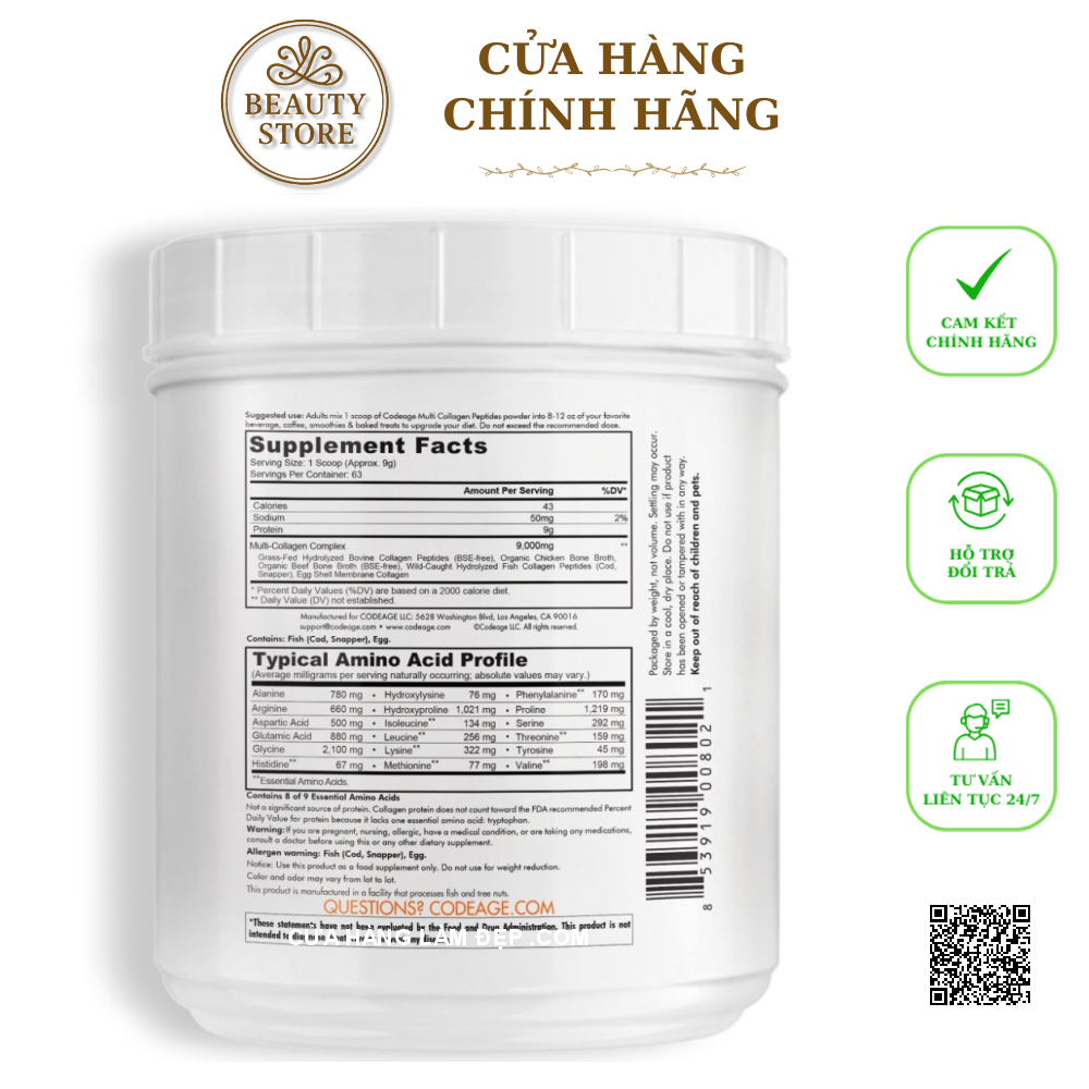 - Bạn có thể tìm mua Bột Collagen hỗ trợ trẻ hóa Da CodeAge Hydrolyzed Multi Collagen Peptides Powder qua website: cuahanglamdep.com