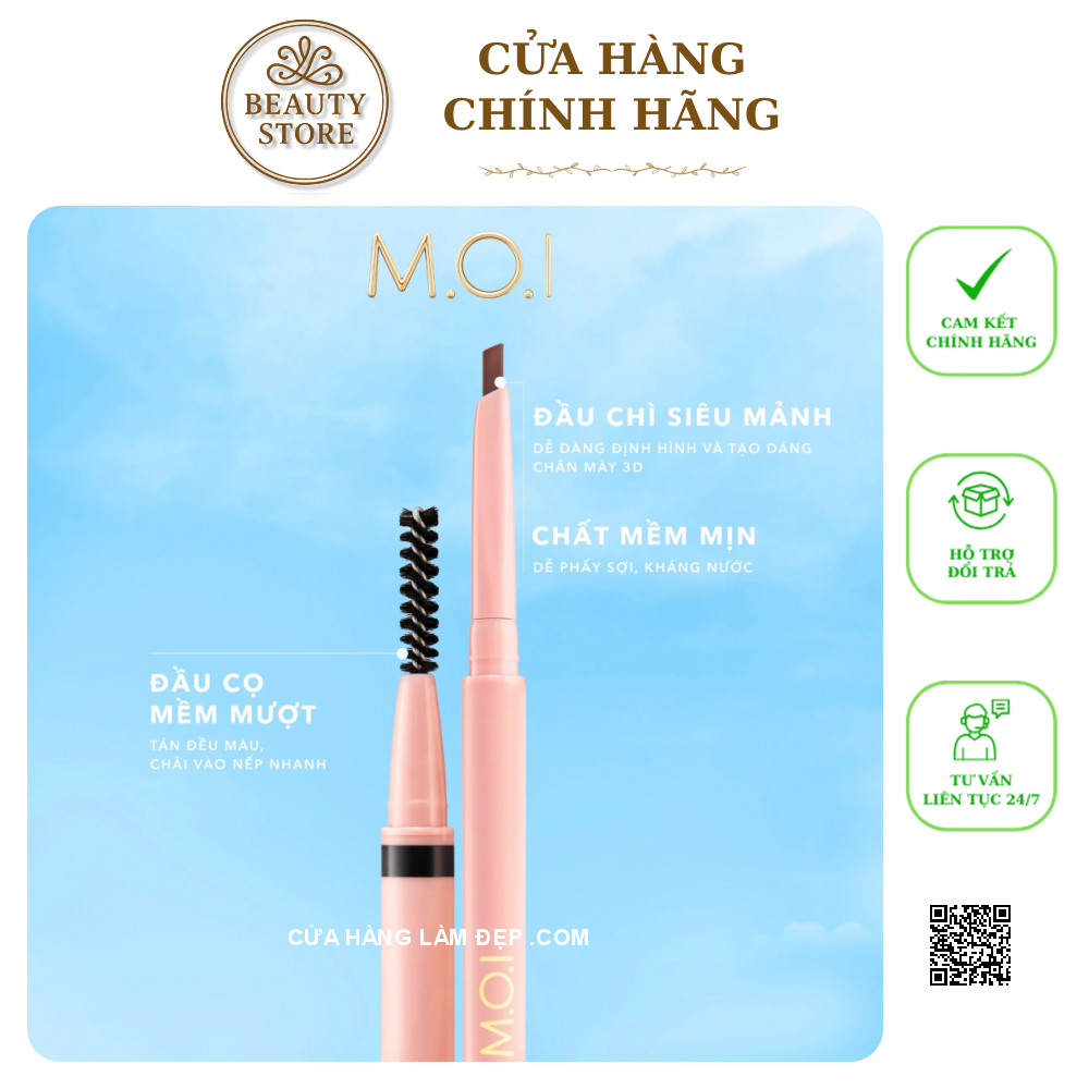 Chì kẻ mày M.O.I Perfect Shape Eyebrow Pencil là dòng chì kẻ mày phiên bản cải tiến và nâng cấp mới nhất từ thương hiệu M.O.I Cosmetics. Với thiết kế 2 đầu tiện dụng với 01 đầu chì kẻ vạt xéo và 01 đầu cọ chải, tạo nên đôi chân mày sắc sảo, tự nhiên. Tone màu thời trang với độ bám màu cao, phù hợp mọi màu da. Đầu chì mềm mại dễ sử dụng, lướt êm tạo đường kẻ long lanh, sắc nét khả năng bền màu suốt 24h.