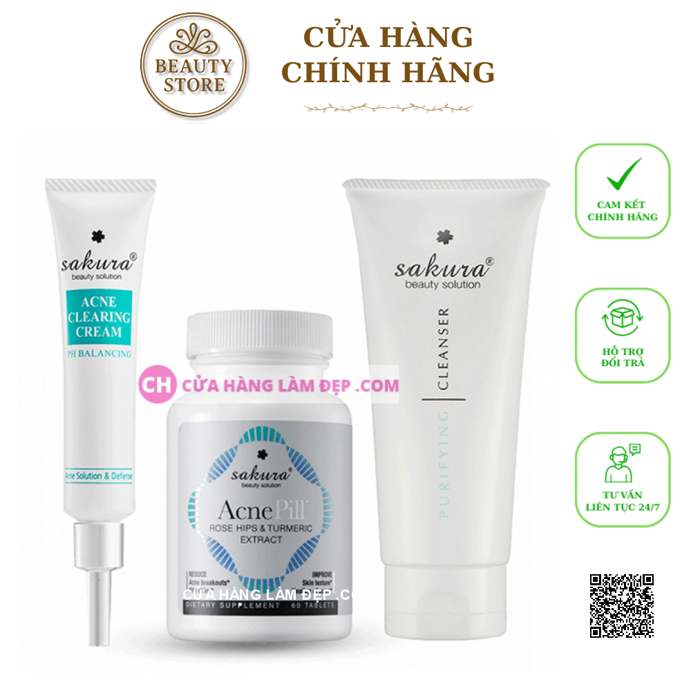 - Kem giảm và ngừa mụn Sakura Acne Clearing Cream: Kem làm giảm và ngừa mụn Sakura Acne Clearing Cream giúp làm giảm tình trạng mụn và hỗ trợ ngừa Chuyên Sâu các loại mụn cứng đầu. Ngoài việc sử dụng mụn, sản phẩm còn giải quyết các vấn đề dầu thừa trên da cũng như bổ sung thêm khả năng kháng viêm cho da.