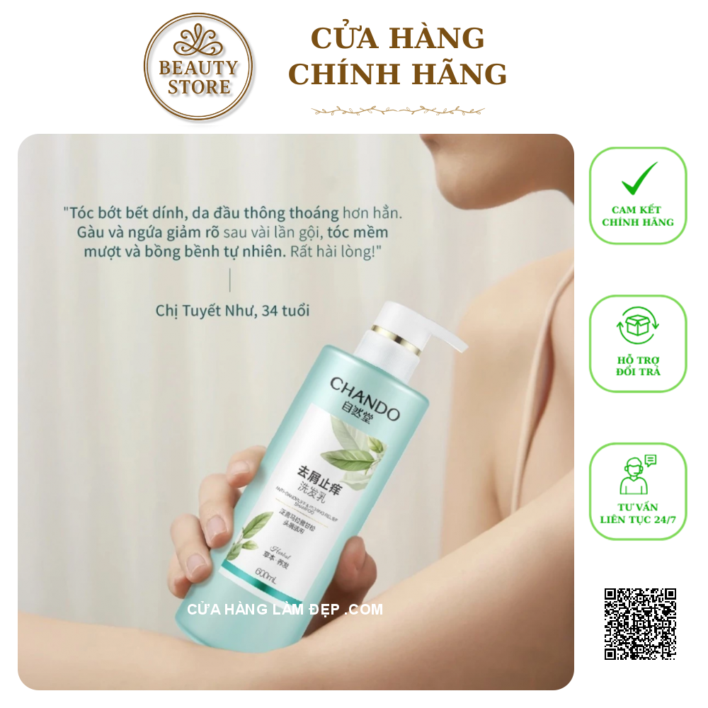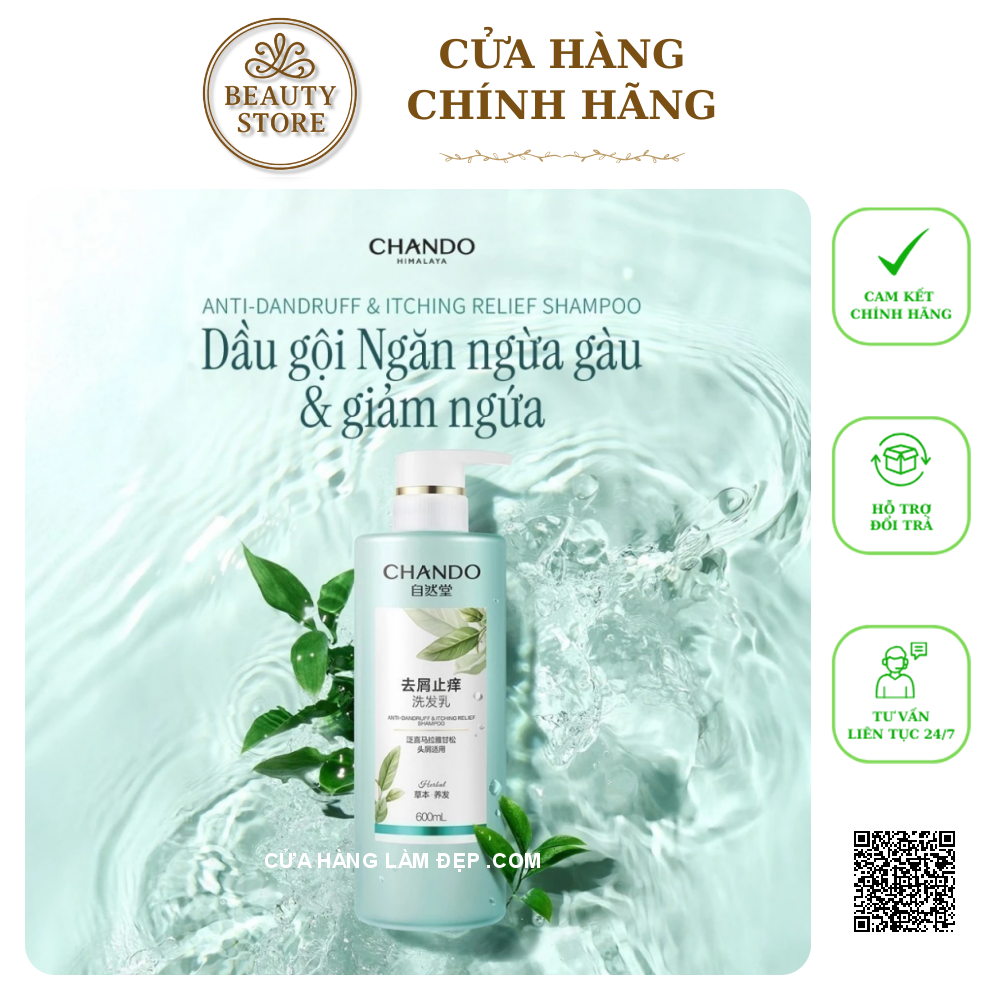 Dầu gội ngăn ngừa gàu & giảm ngứa CHANDO Himalaya 600ml là sản phẩm chăm sóc tóc đến từ thương hiệu CHANDO Himalaya – nổi tiếng với các dòng mỹ phẩm thiên nhiên lấy cảm hứng từ sự tinh khiết của dãy núi Himalaya. Với công thức dịu nhẹ, sản phẩm giúp làm sạch sâu da đầu, loại bỏ gàu và giảm ngứa hiệu quả, mang lại cảm giác dễ chịu và mái tóc khỏe mạnh sau mỗi lần sử dụng.