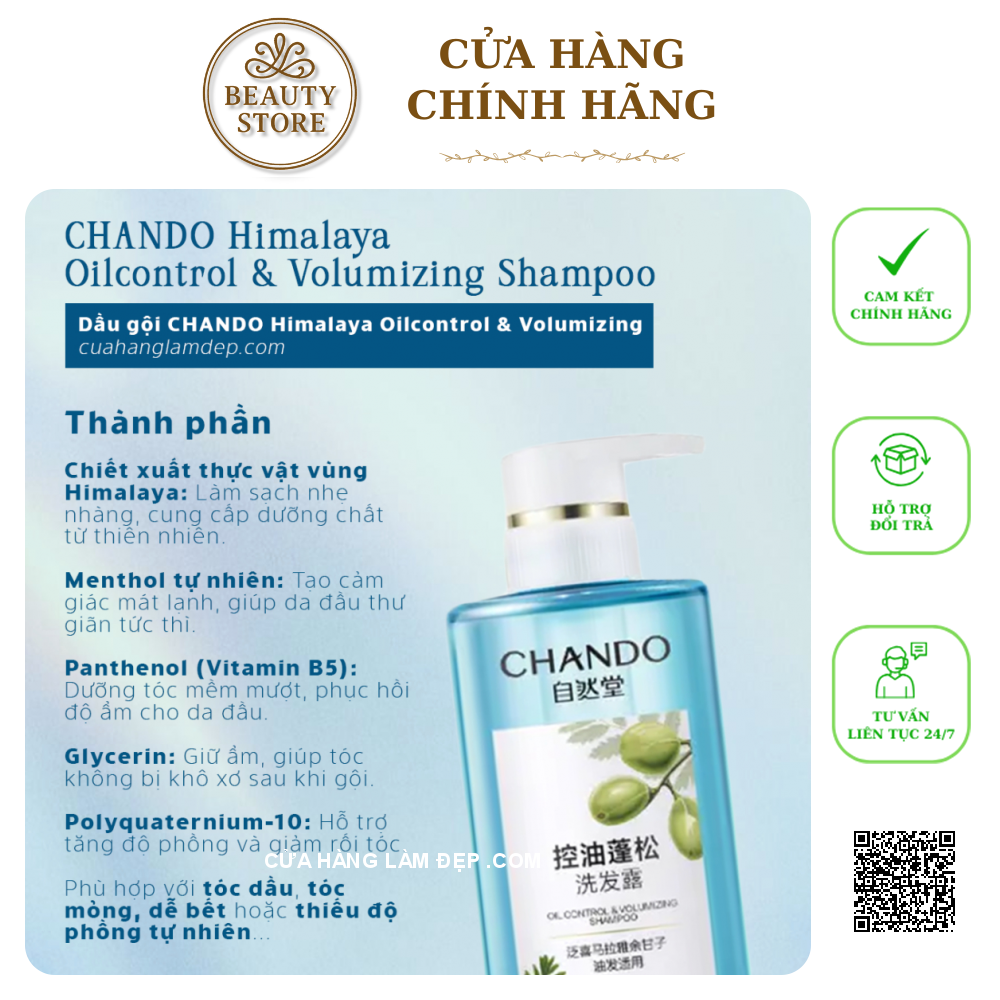 Tại hệ thống Cửa Hàng Làm Đẹp, sản phẩm Dầu Gội CHANDO Himalaya Oilcontrol & Volumizing Shampoo Dầu Gội CHANDO Himalaya Oilcontrol & Volumizing Từ Trung Quốc có giá 420.000 VNĐ