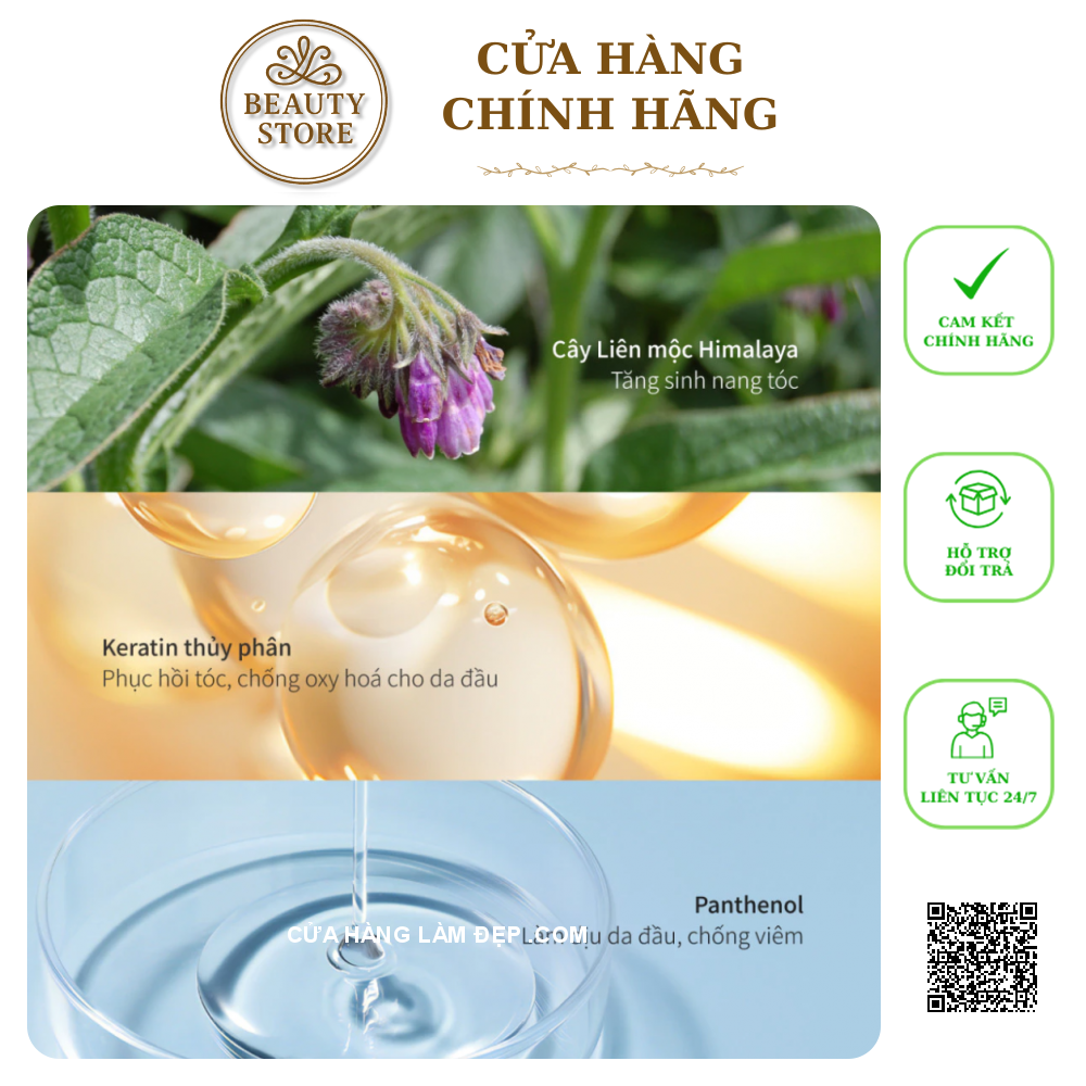 Chiết xuất thảo mộc Himalaya: Làm sạch da đầu nhẹ nhàng, hỗ trợ cân bằng dầu và giảm bết tóc.