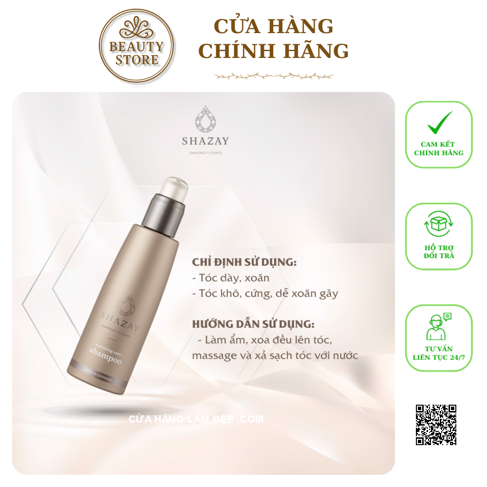 - Công thức làm sạch dịu nhẹ, an toàn: Dầu gội dưỡng tóc Shazay Enriching Care mang đến trải nghiệm tuyệt vời, thành phần chứa nhiều tinh chất thiên nhiên quý hiếm, không tạo bọt nhiều, giúp nhẹ nhàng làm sạch sâu, cho tóc bóng mượt tự nhiên và khỏe mạnh.