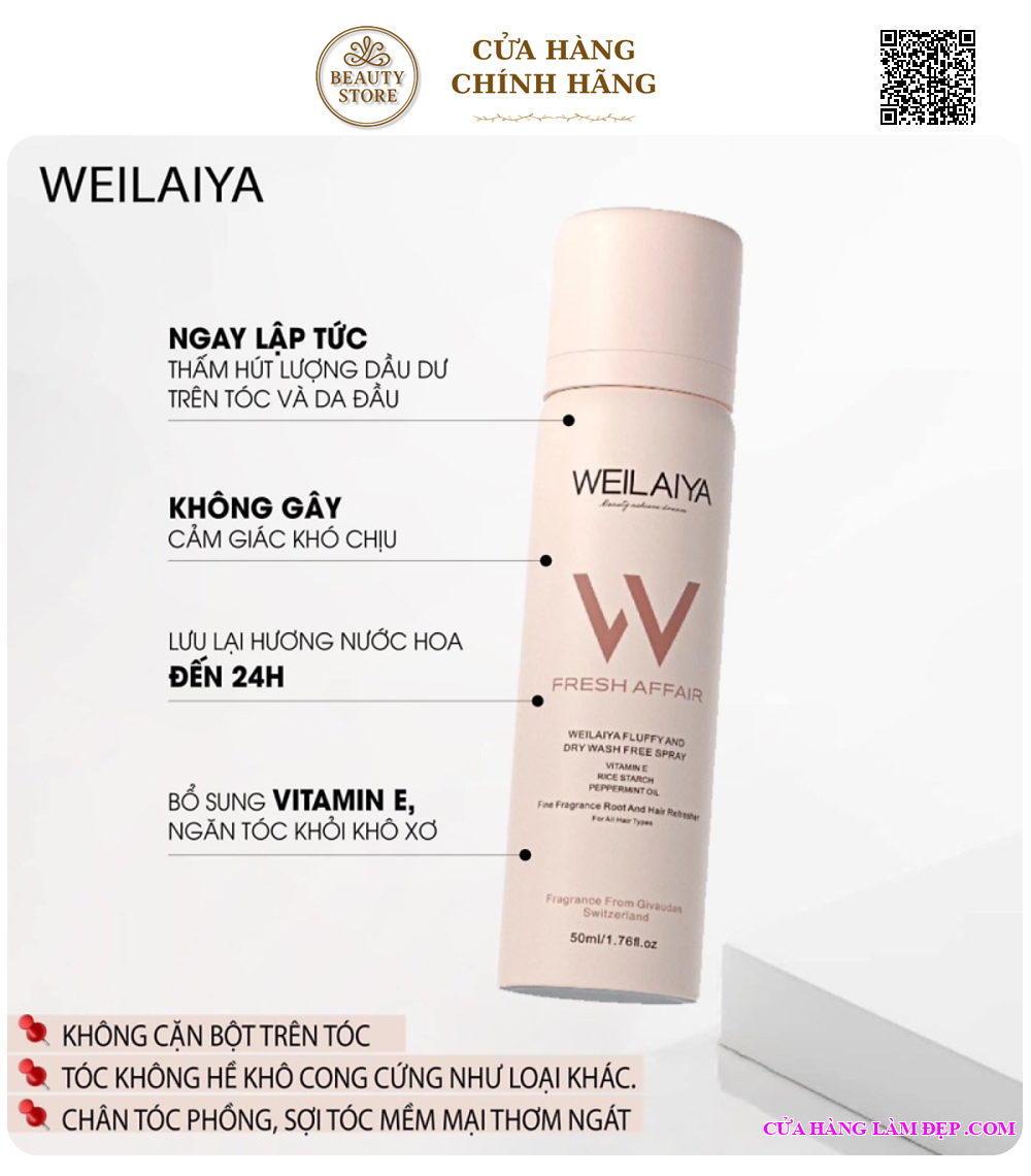 - Bạn có thể tìm mua Dầu Gọi Khô Làm Phồng Tóc Weilaiya Fresh Affair Fulffy And Dry Wash Free Spray qua website: cuahanglamdep.com