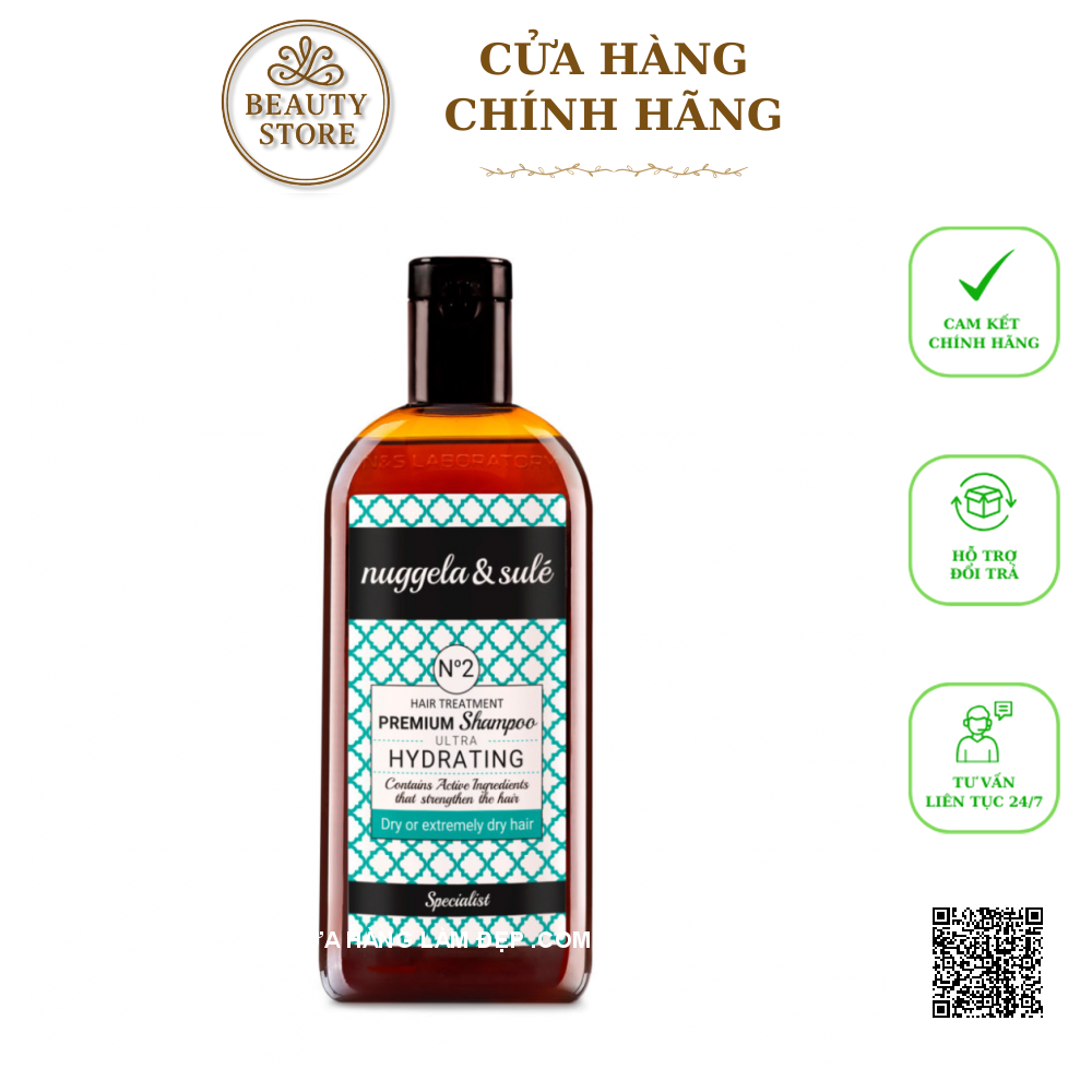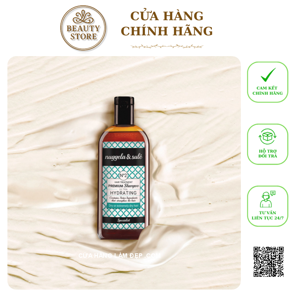 Nuggela & Sule Nº2 Hair Treatment Premium Shampoo Ultra Hydrating là dầu gội kết cấu dạng kem siêu dưỡng ẩm cung cấp độ ẩm cao, hỗ trợ Hỗ Trợ Chống oxy hoá và phục hồi tóc khô, cực khô, dễ mất nước, tóc cứng, xoăn và xỉn màu.