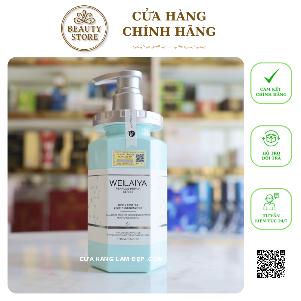 Tại Hệ Thống Cửa Hàng Làm Đẹp, Sản Phẩm Dầu Gội Weilaiya White Truffle Lightness Shampoo Phục Hồi Đa Tầng Trứng Cá Tầm Từ Trung Quốc 450ml có giá: 585.000 VND