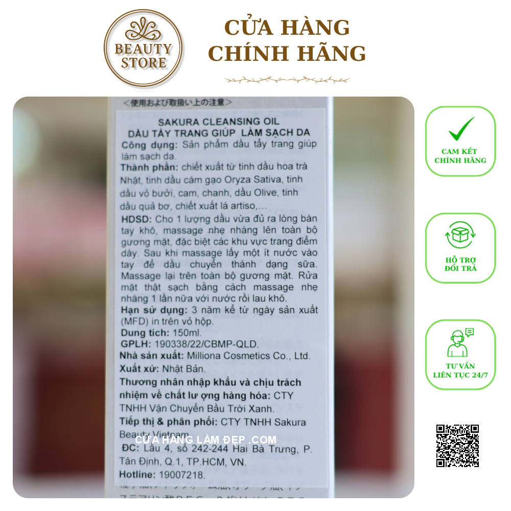 Sản phẩm dầu tẩy trang Sakura Cleasing Oil được trưng bày và bán tại Cửa Hàng Làm Đẹp với giá: 650.000 VND