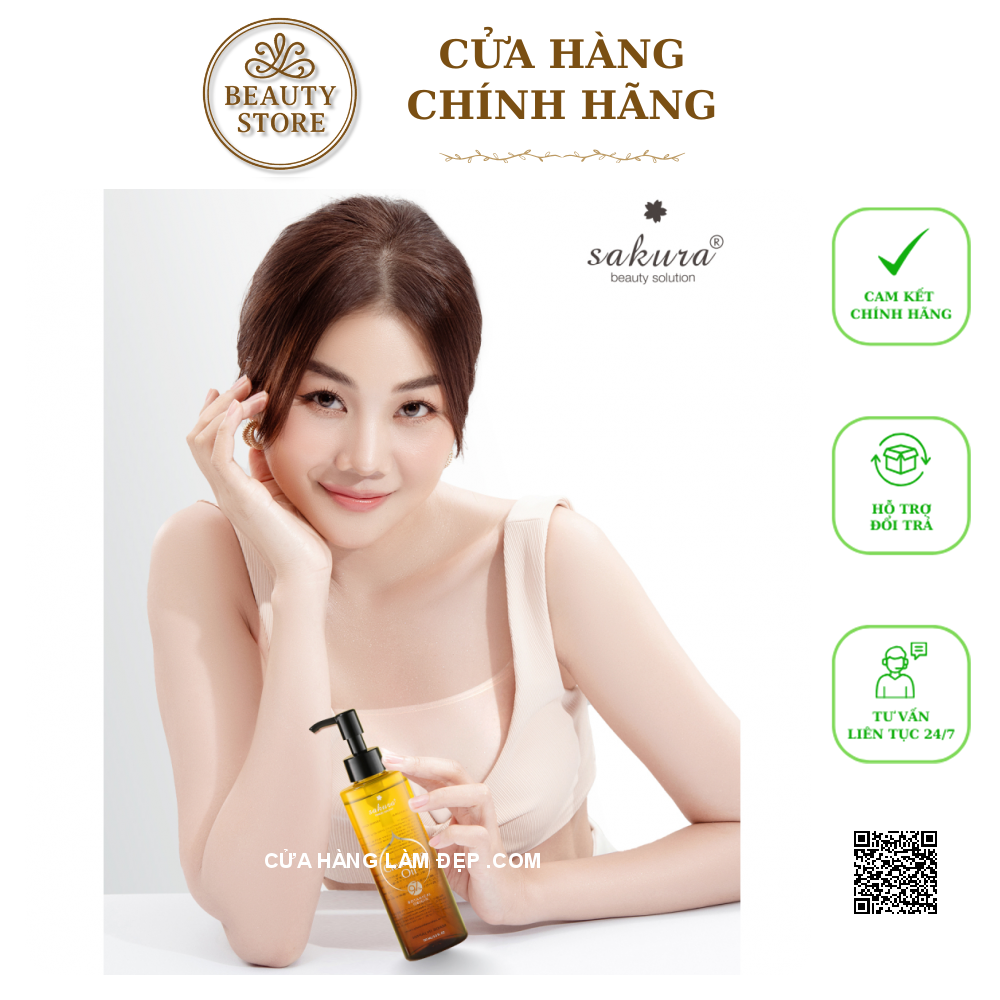Dầu tẩy trang Sakura Cleasing Oil Với thành phần là sự kết hợp của 14 loại dầu tự nhiện cao cấp, được áp dụng kỹ thuật ép lạnh tiên tiến hàng đầu hiện nay, dầu tẩy trang Sakura Cleansing Oil thuộc mỹ phẩm sakura đã lưu giữ được hầu hết những tinh chất cao cấp và giá giảm nhất, vừa giúp tẩy trang an toàn, làm sạch các lớp kêm phấn make-up, vừa cung cấp độ ẩm và dưỡng chất cho da, giúp cân bằng da và chăm sóc làn da khỏe mạnh, không có bất kỳ sự gây hại nào cho da. Với Sakura Cleasing Oil làn da của bạn sẽ sớm trở nên sạch mịn và săn chắc như tuổi đôi mươi.