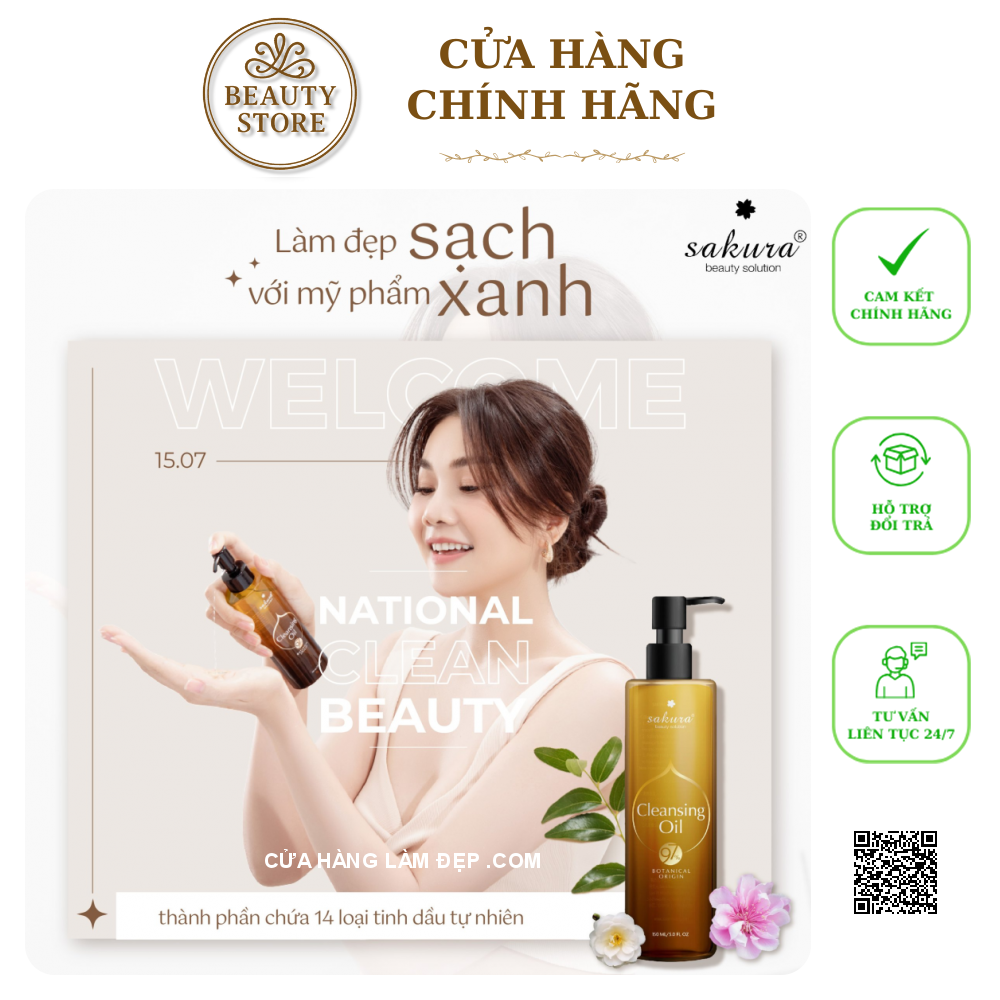 - Dầu tẩy trang Sakura Cleasing Oil là kết quả của quá trình nghiên cứu lâu dài của viện nghiên cứu Sakura Nhật Bản, được tổng hợp từ những tinh chất thiên nhiên quý hiếm từ Nhật kết hợp với dây chuyền sản xuất hiện đại nhằm đem đến cho khách hàng sự hài lòng tối ưu với làn da sau khi sử dụng sản phẩm.