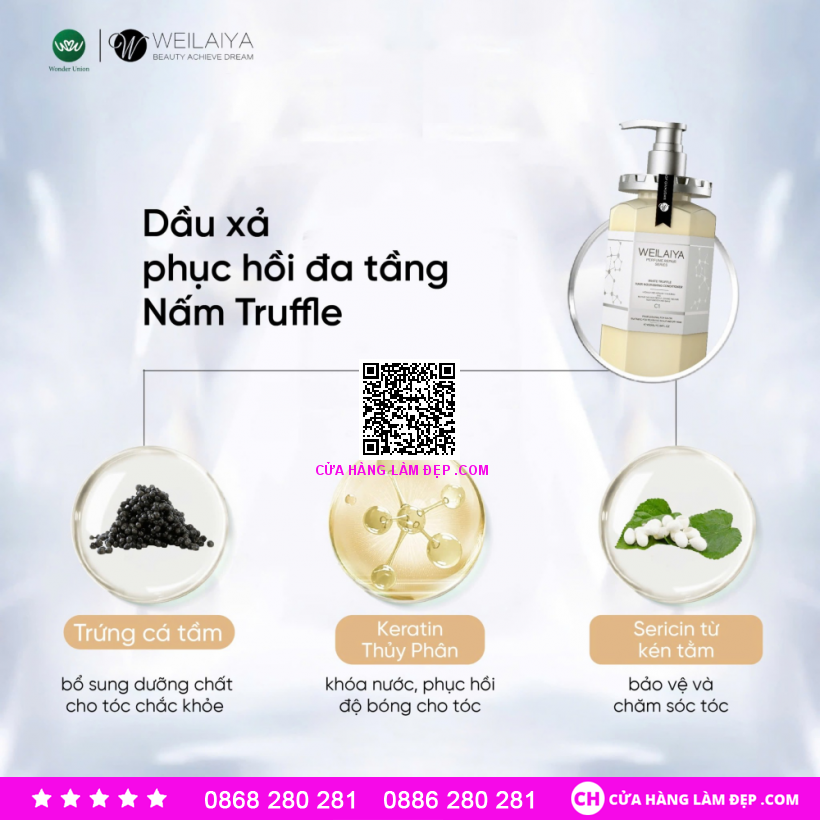 - Dầu Xả Phục Hồi Đa Tầng Weilaiya White Truffle Hair Nourishing Conditioner Nấm Truffle ra đời phá vỡ các khuôn mẫu cũ, thiết lập khái niệm hoàn toàn mới, dẫn đầu trong ngành chăm sóc tóc.