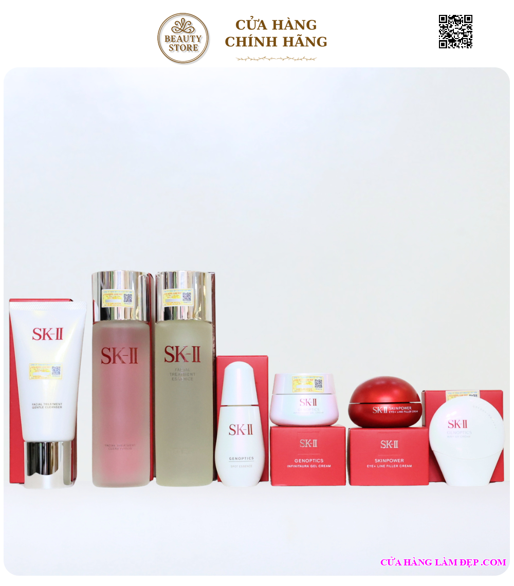 Bộ 7 món cao cấp từ SK-II là giải pháp chăm sóc da chuyên sâu cho làn da nám, tàn nhang và lão hóa. Sự kết hợp giữa tinh chất đặc trị GenOptics Spot Essence và dòng SkinPower giúp tác động kép: làm mờ sắc tố – tái tạo da – tăng độ đàn hồi.