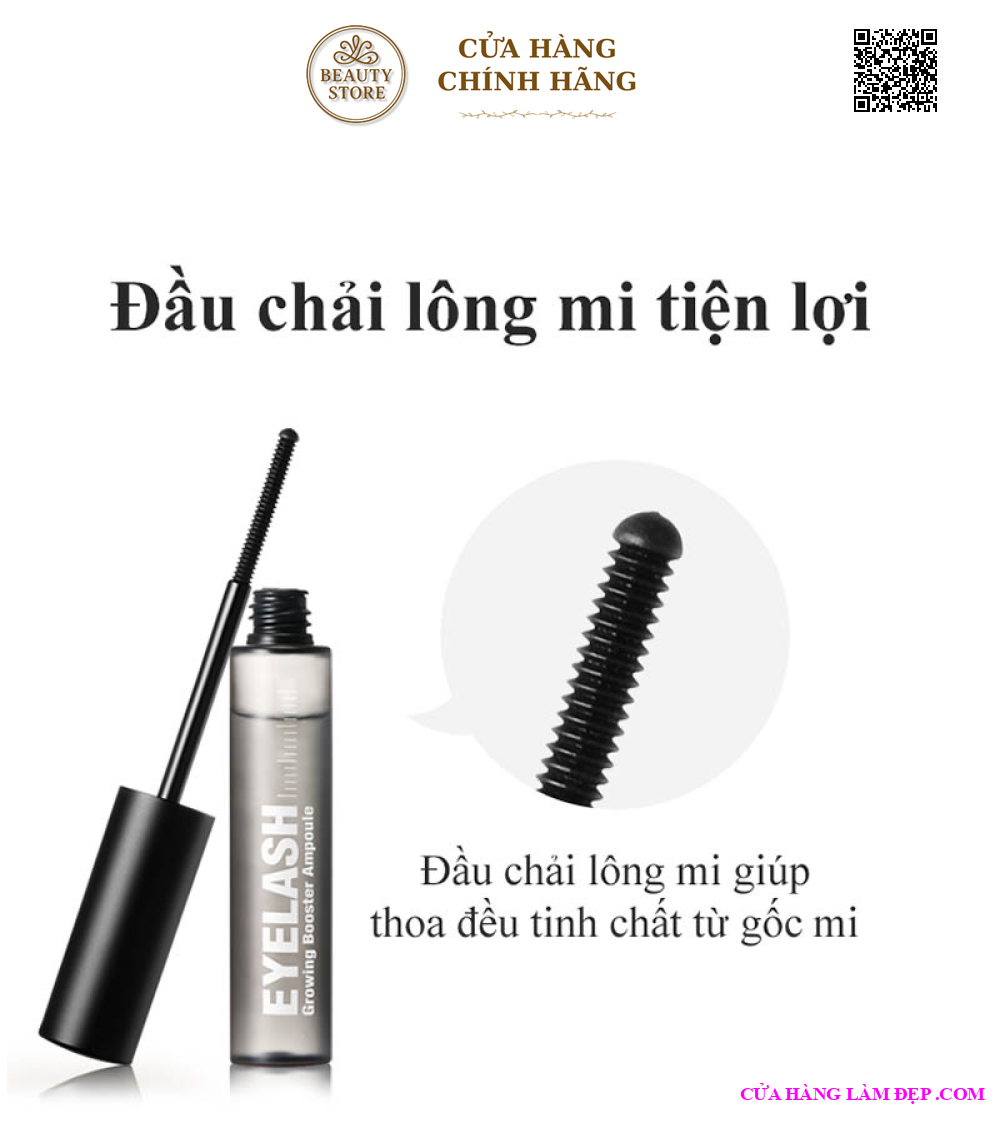 - Đầu chải siêu mảnh và cuộn sát lông mi. Sử dụng Eyelash Growing Booster Ampoule giúp bạn có bờ mi cực khoẻ mạnh và tràn đầy sức sống.
