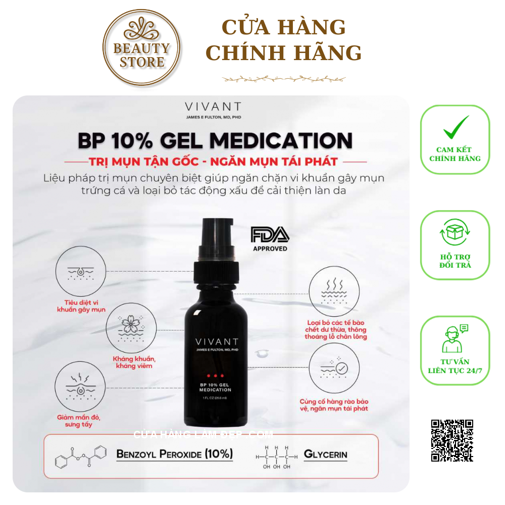 Địa Chỉ Mua Gel Giảm Mụn Viêm, Mụn Trứng Cá Vivant Skincare BP 10% Gel Medication Chính Hãng: