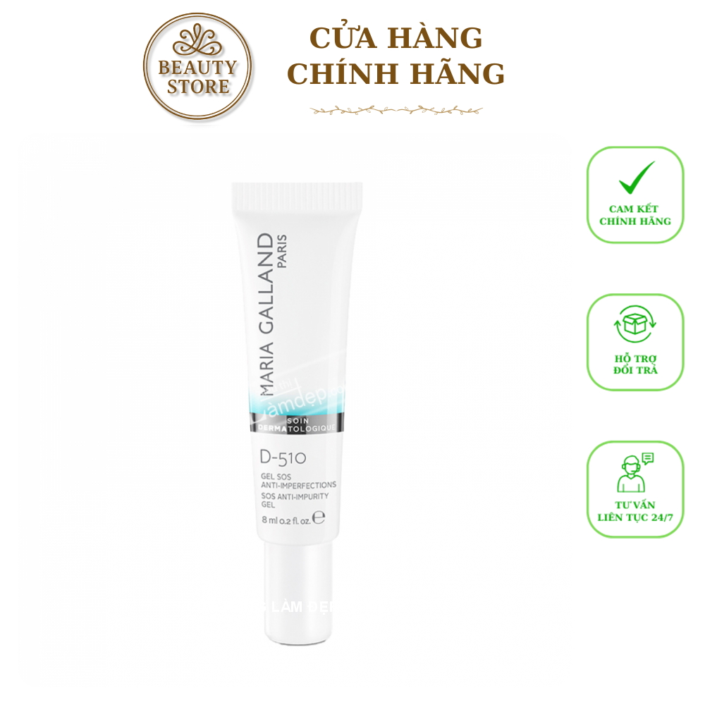 Gel Giảm Mụn, Kiểm Soát Dầu Maria Galland D-510 SOS Anti-Impurity Gel chuyên kiểm soát và ngăn chặn các vấn đề về da như chống viêm, kháng khuẩn, giảm sưng tấy do mụn, ngăn ngừa các dấu vết để lại trên da. Sản phẩm có tác dụng giảm viêm, tăng chu kì thay da, ngăn ngừa tắc nghẽn lỗ chân lông và tiêu diệt vi khuẩn propionibacterium acnes.