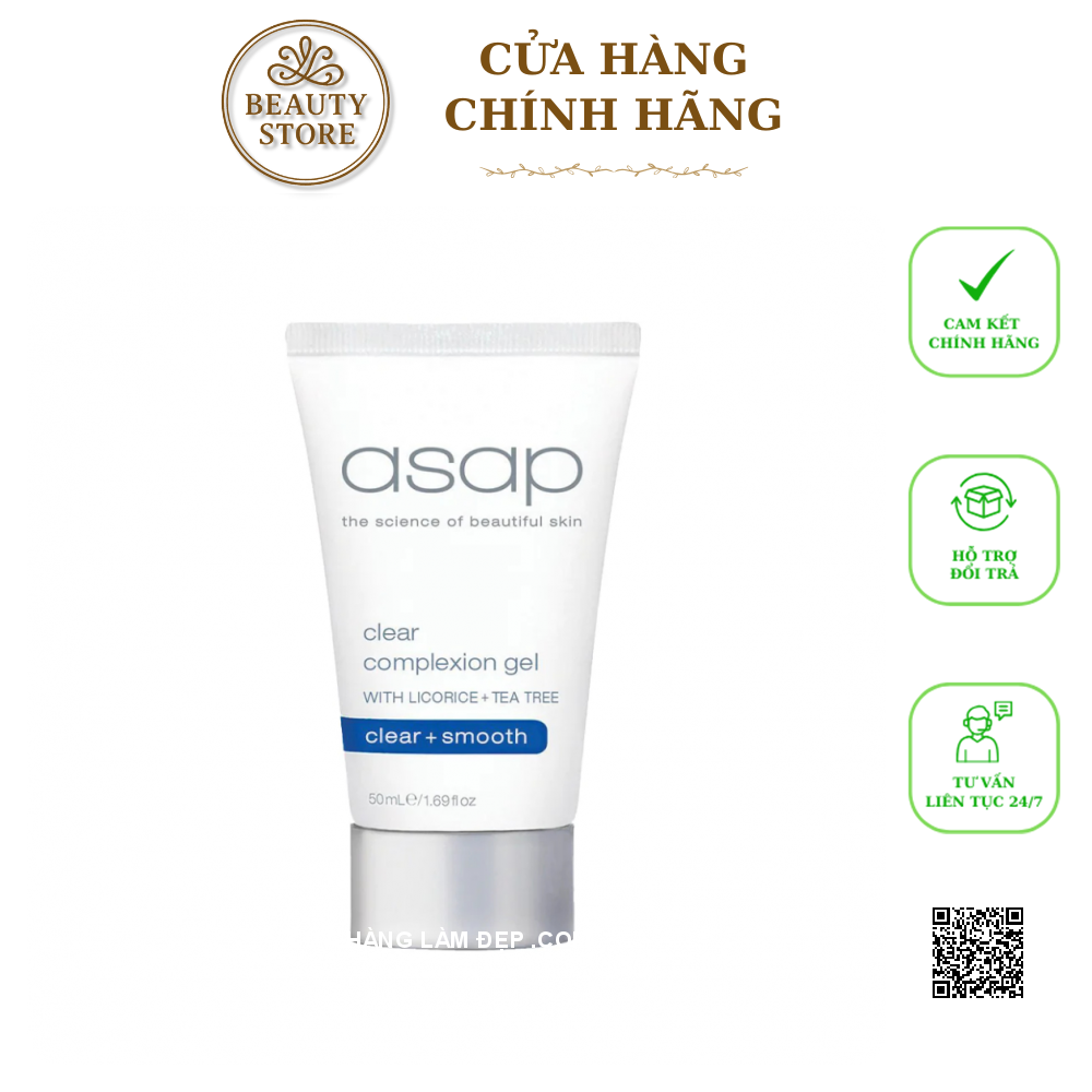 Gel hỗ trợ hỗ trợ ngừa mụn Asap Clear Complexion Gel cung cấp cho bạn giải pháp hiệu quả mà bạn đang chờ đợi. Chứa AHA / BHAs mạnh mẽ kết hợp với chiết xuất từ cam thảo, tràm trà, việt quất đen và cúc kim tiền, sản phẩm hoạt động trên nhiều cấp độ giúp điều giảm và hỗ trợ ngừa mụn trứng cá, làm sạch tắc nghẽn lỗ chân lông và cải thiện tông màu da.