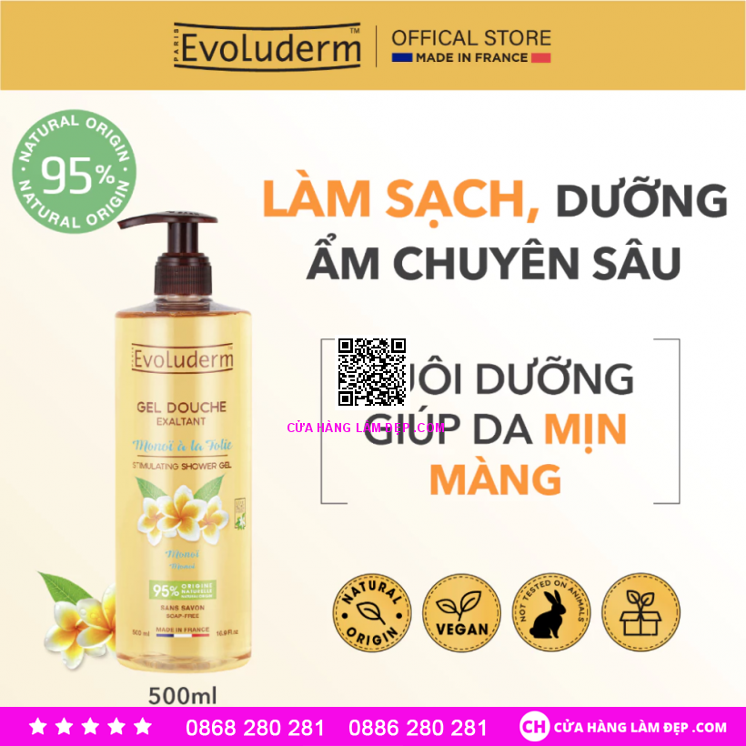 Evoluderm Gel Tắm Monoi de Tahiti được khách hàng của Hệ Thống Cửa Hàng Làm Đẹp đánh giá cao.
