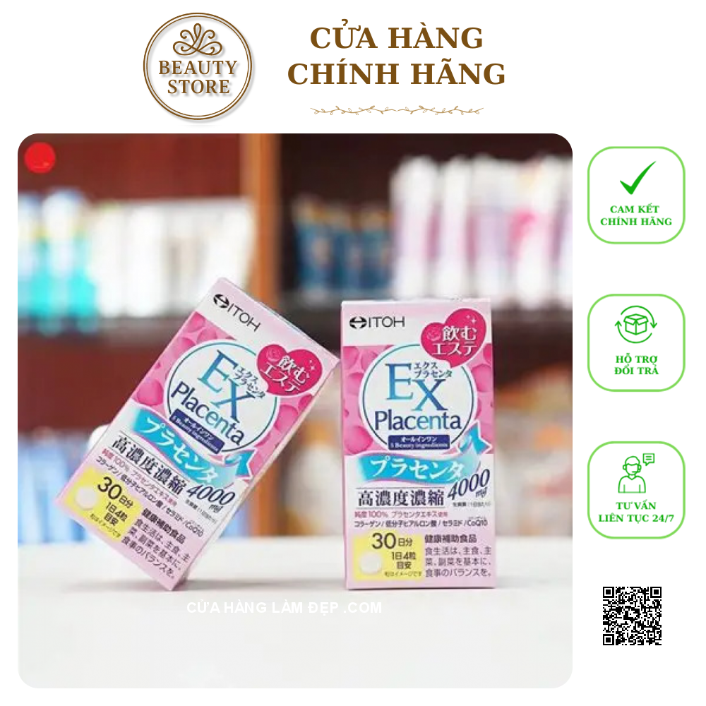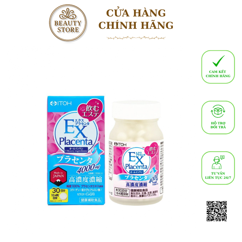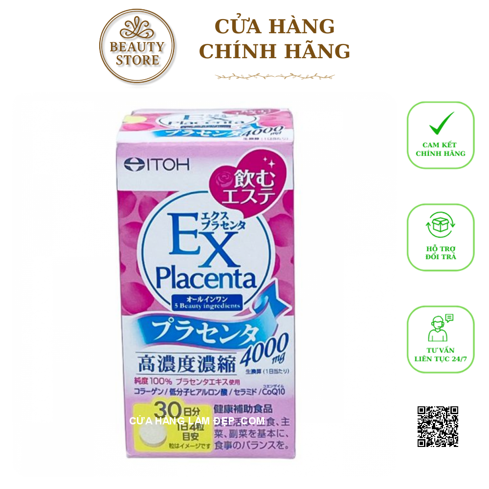 Viên uống EX Placenta là sản phẩm chăm sóc sức khỏe và sắc đẹp cao cấp đến từ thương hiệu dược phẩm uy tín Nhật Bản ITOH Kanpo. Với hàm lượng 100mg hoạt hóa – gấp 26 lần sức mạnh thông thường, sản phẩm giúp thúc đẩy quá trình tái tạo da, cân bằng nội tiết tố và làm chậm các dấu hiệu lão hóa.