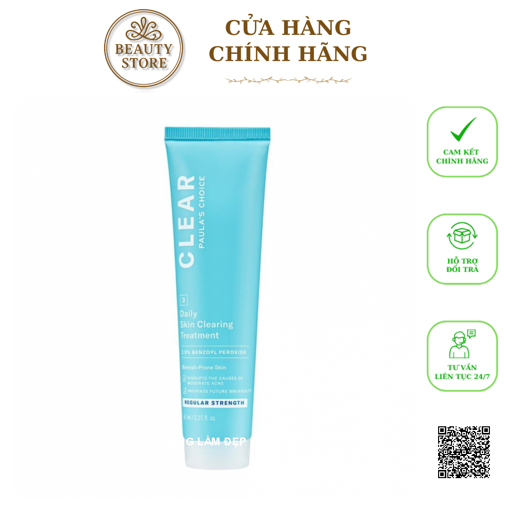 - Bạn có thể tìm mua Kem Chấm Mụn Paula’s Choice Clear Regular Strength Daily Skin Clearing Treatment 2.5% Benzoyl Peroxide qua website: cuahanglamdep.com