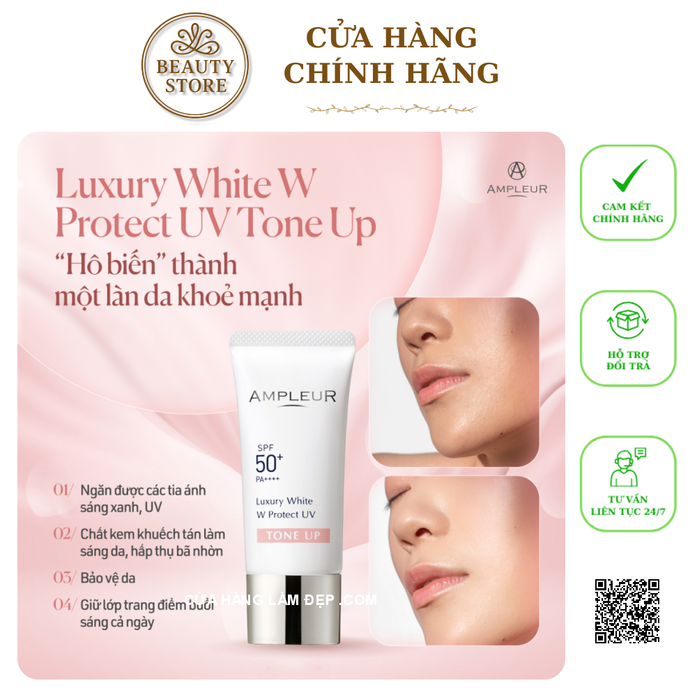 - Bạn có thể tìm mua Kem hỗ trợ Hỗ Trợ Chống Nắng Ampleur Luxury White W Protect UV Tone Up SPF50+/PA++++ qua website: cuahanglamdep.com