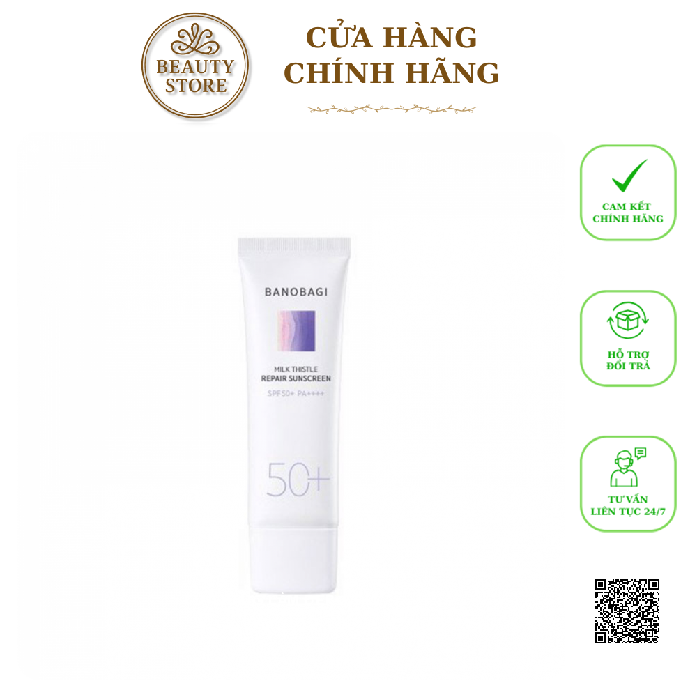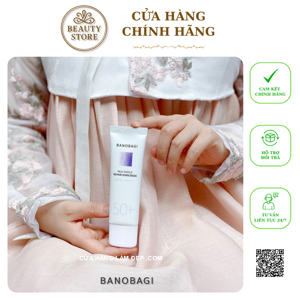 - Kem hỗ trợ Hỗ Trợ Chống Nắng Banobagi Milk Thistle Repair Sunscreen SPF50+ PA++++ giúp bảo vệ da với chiết xuất cây kế sữa hỗ trợ Hỗ Trợ Chống tia UV, làm mờ vết thâm và được kiểm nghiệm da liễu. 2 công dụng dưỡng ẩm và hỗ trợ Hỗ Trợ Chống nắng trong cùng 1 sản phẩm, bước cuối cùng để chăm sóc da buổi sáng tạo lá chắn an toàn cho làn da để hỗ trợ Hỗ Trợ Chống tia cực tím và dưỡng ẩm hiệu quả.