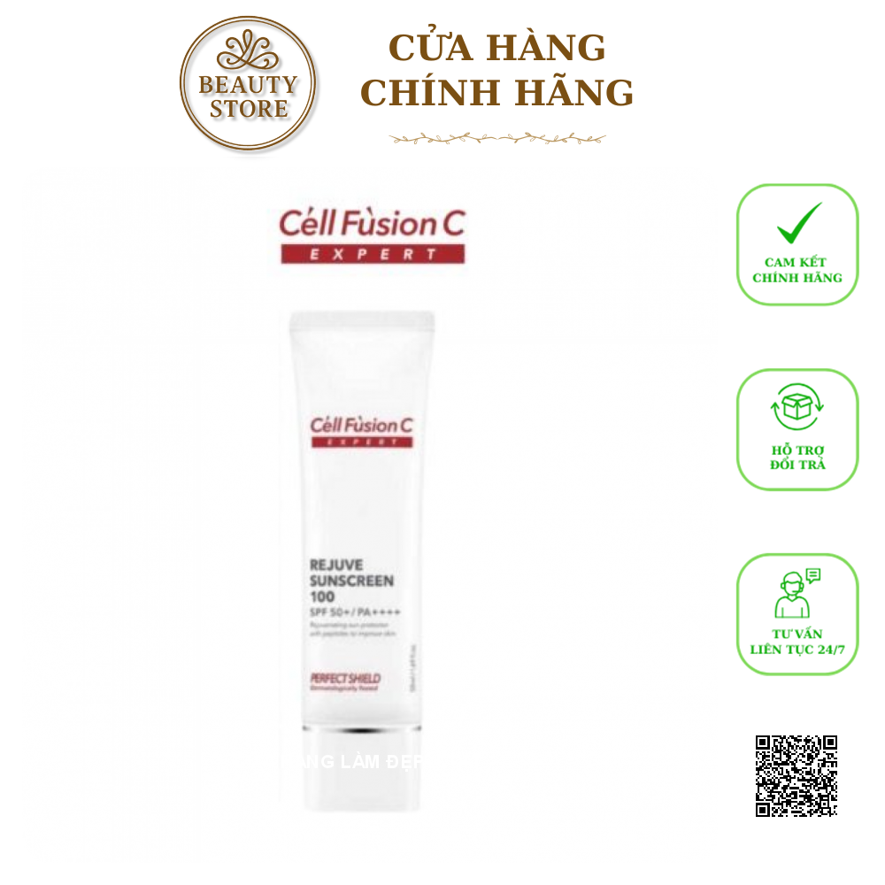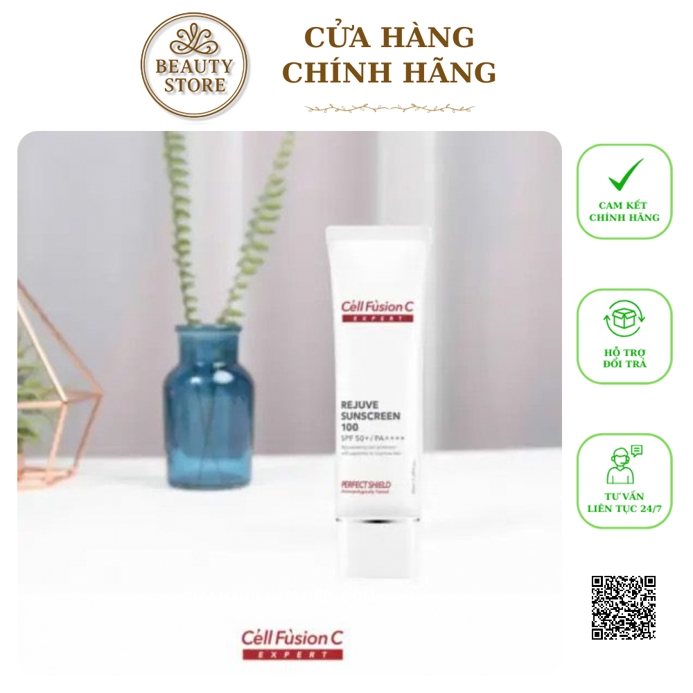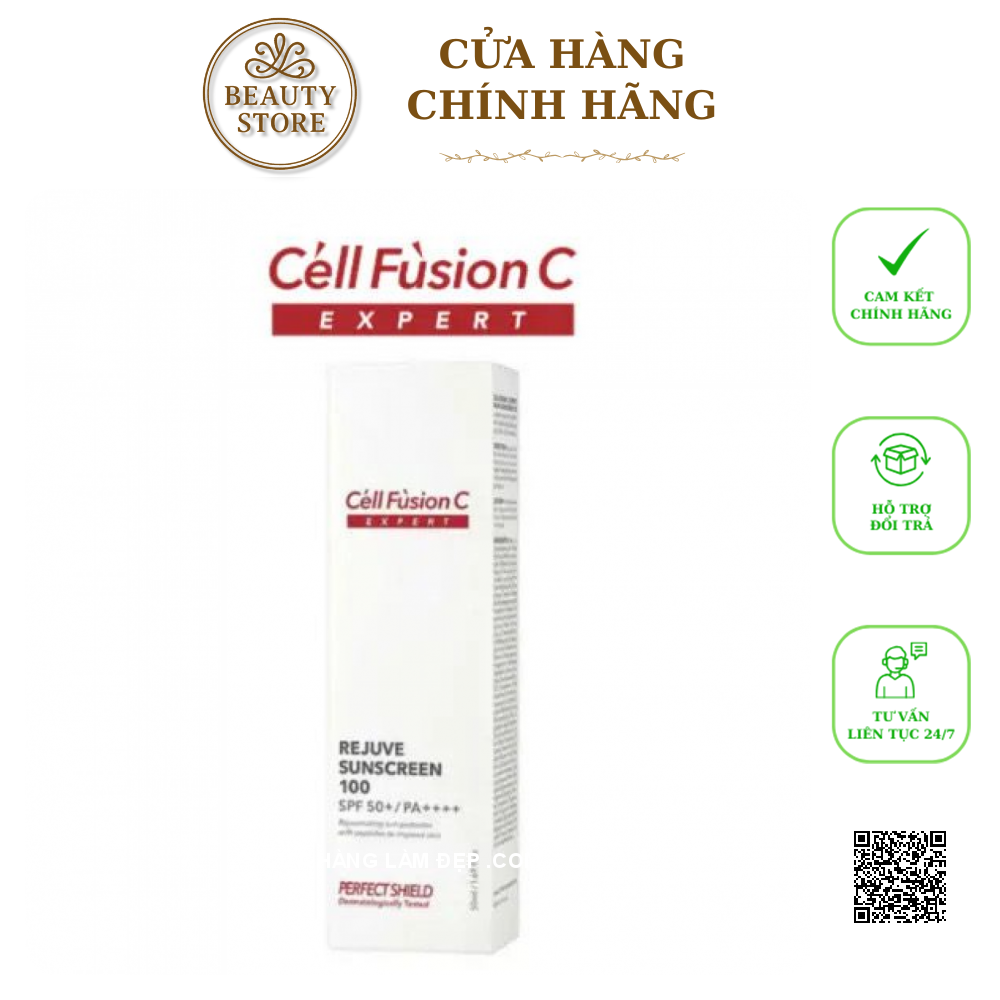 Kem hỗ trợ Hỗ Trợ Chống Nắng Bảo Vệ, Tái Tạo Da Cell Fusion C Expert Rejuve Sunscreen 100 SPF50+/ PA++++ là dòng sản phẩm cao cấp thuộc bộ sưu tập Expert của thương hiệu dược mỹ phẩm Cell Fusion C (Hàn Quốc). Sản phẩm không chỉ bảo vệ da khỏi tác hại của tia UV mà còn hỗ trợ tái tạo, phục hồi làn da yếu, da sau điều giảm như laser, peel, hoặc da đang trong quá trình phục hồi.