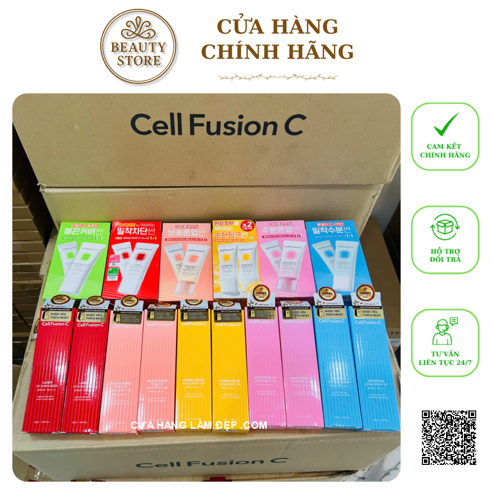 Kem hỗ trợ Hỗ Trợ Chống Nắng Cell Fusion C Lazer/Advanced Clear/Brightening/Aqua Tone Up/Aquatica/Derma Relief Suncream 100 SPF 50+ 35ml Từ Hàn Quốc được khách hàng của Hệ Thống Cửa Hàng Làm Đẹp đánh giá cao.