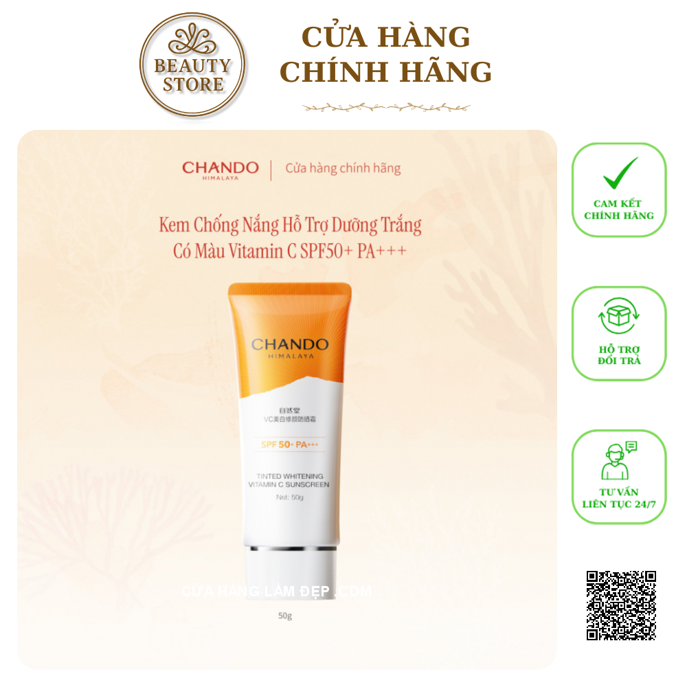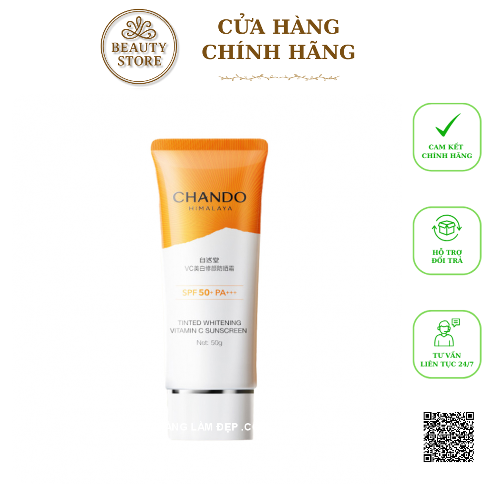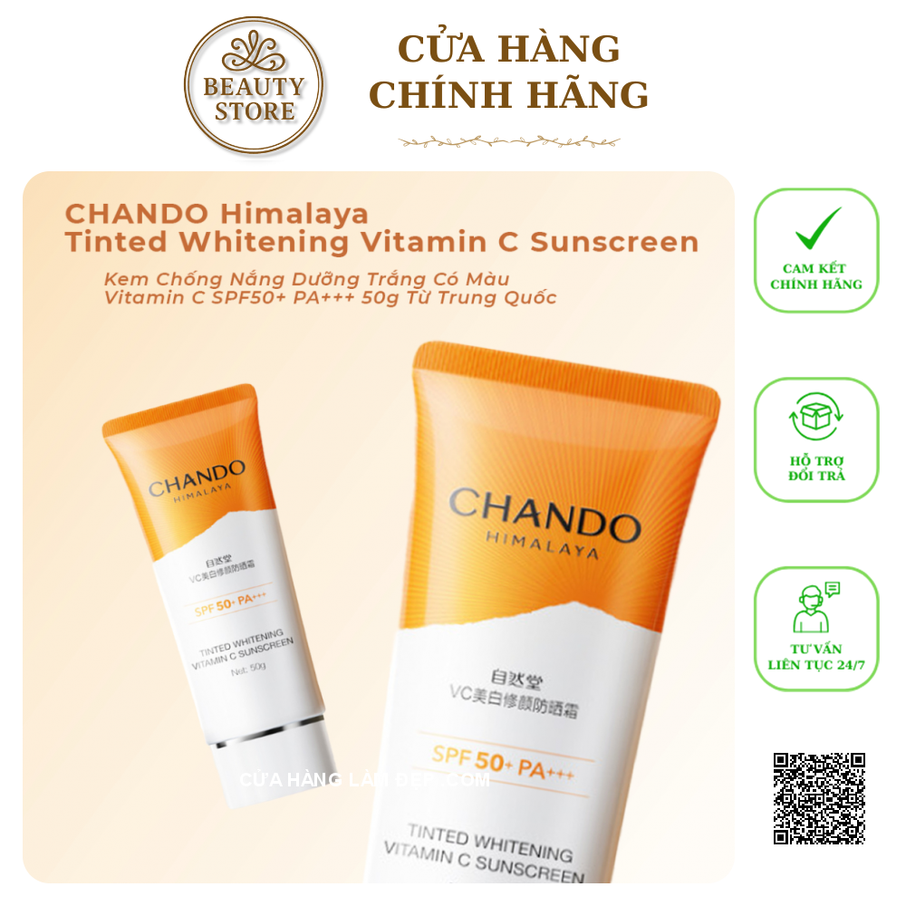 Tại hệ thống Cửa Hàng Làm Đẹp, sản phẩm Kem hỗ trợ Hỗ Trợ Chống Nắng CHANDO Himalaya Tinted Whitening Vitamin C Sunscreen Dưỡng Trắng Có Màu Vitamin C SPF50+ PA+++ 50g Từ Trung Quốc có giá 685.000 VNĐ