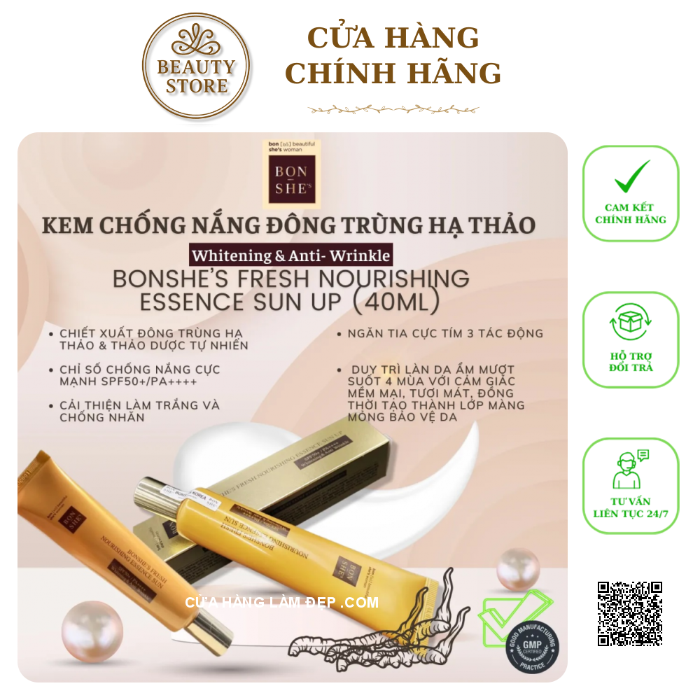 - Bạn có thể tìm mua Kem Chống Nắng Đông Trùng Hạ Thảo Bonshe’s Fresh Nourishing Essence Sun Up qua website: cuahanglamdep.com