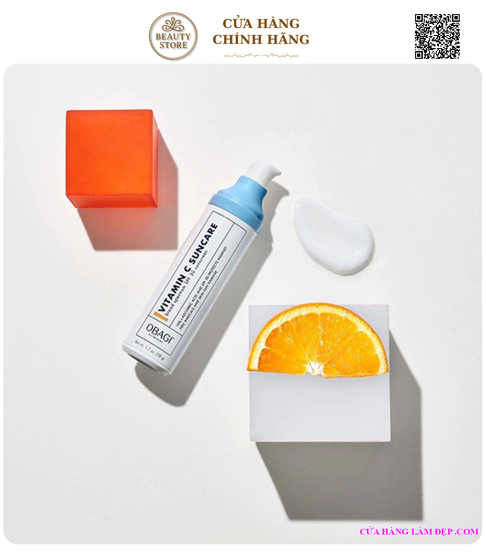 -Kem chống nắng dưỡng sáng da OBAGI CLINICAL Vitamin C Suncare Broad Spectrum SPF 30 Sunscreen chứa các hoạt chất chống nắng bảo vệ quang phổ rộng, giúp giảm thiểu nếp nhăn, thâm nám và tổn thương từ ánh mặt trời. Bên cạnh đó, vitamin C trong công thức còn đóng vai trò chống oxy hóa mạnh mẽ cho da.