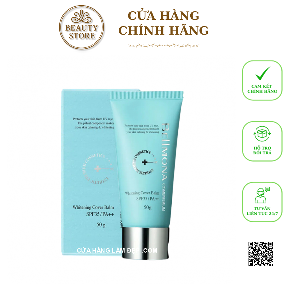 Giới Thiệu Kem hỗ trợ Hỗ Trợ Chống Nắng Dưỡng Trắng Bellmona Whitening Cover Balm SPF35: