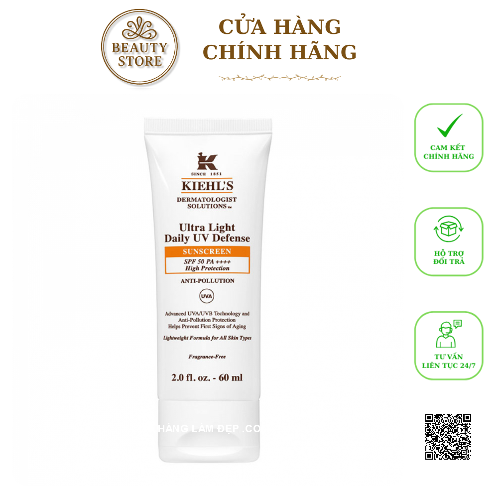 Tại Hệ Thống Cửa Hàng Làm Đẹp, Sản Phẩm Kem hỗ trợ Hỗ Trợ Chống Nắng Kiehl’s Ultra Light Daily UV Defense Sunscreen SPF 50 PA+++ High Protection có giá: 899.000 VND