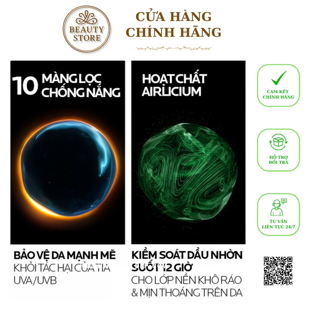 Với kết cấu mỏng nhẹ, thấm nhanh và khả năng nâng tone tự nhiên, sản phẩm mang lại lớp finish ráo mịn, không gây bí da. Đặc biệt, hoạt chất Airlicium giúp kiểm soát dầu suốt 12 giờ, phù hợp với khí hậu nóng ẩm và làn da dầu mụn.
